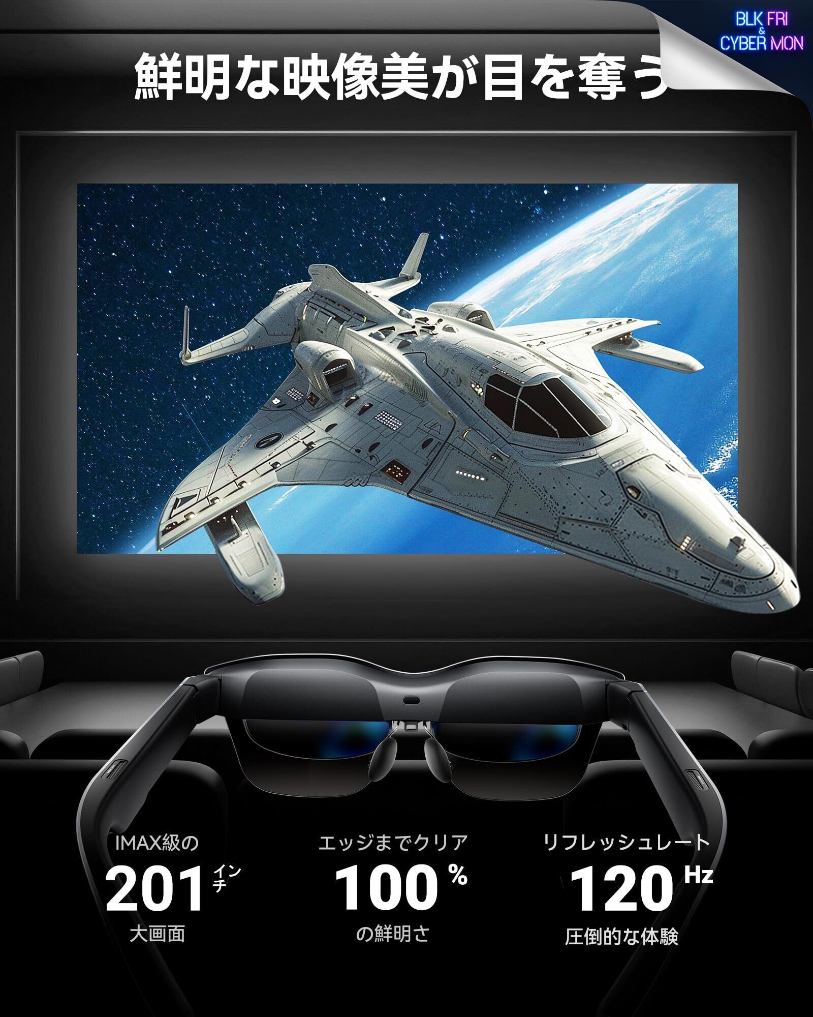 【圧倒的な大画面体験を提供】201インチのマイクロOLEDスクリーンが、実物に近い色彩で驚くほど美しい映像を映し出します。3つのカラーモードが、あなたの視覚的なニーズに完璧に応えます。ビデオディスプレイグラスは、10段階の明るさ調整機能を備え、かつてないほどの明るさを実現。屋内外を問わず、薄暗い場所でも明るい場所でも、常に絶妙な視覚体験をお届けします。*6メートル先に201㌅相当、10メートル先に330㌅相当、4メートル先に135㌅相当の大迫カスグリーン,固定された画像を表示する機能はありません。
