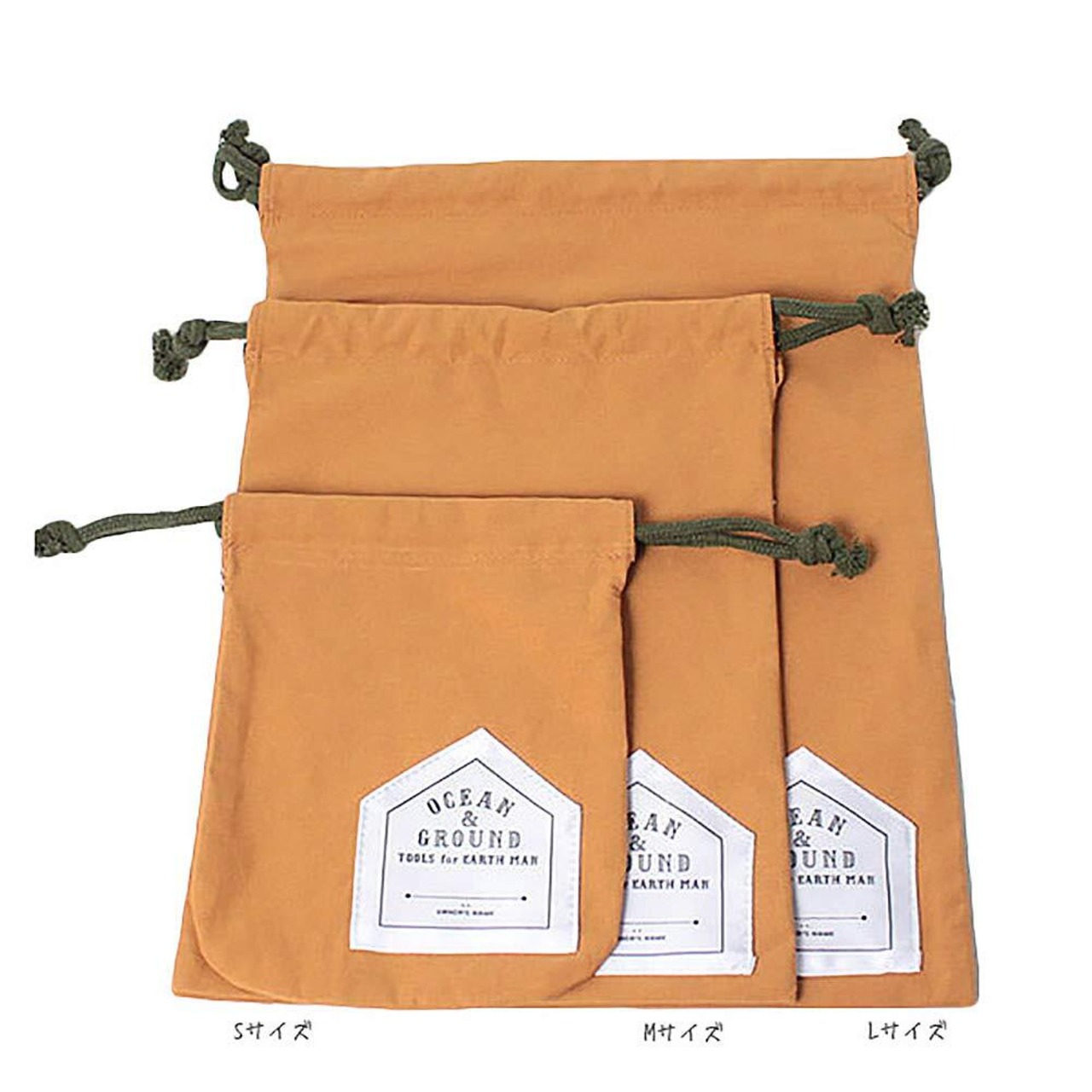 OCEAN&GROUND オーシャンアンドグラウンド コットン巾着 中 キャメル