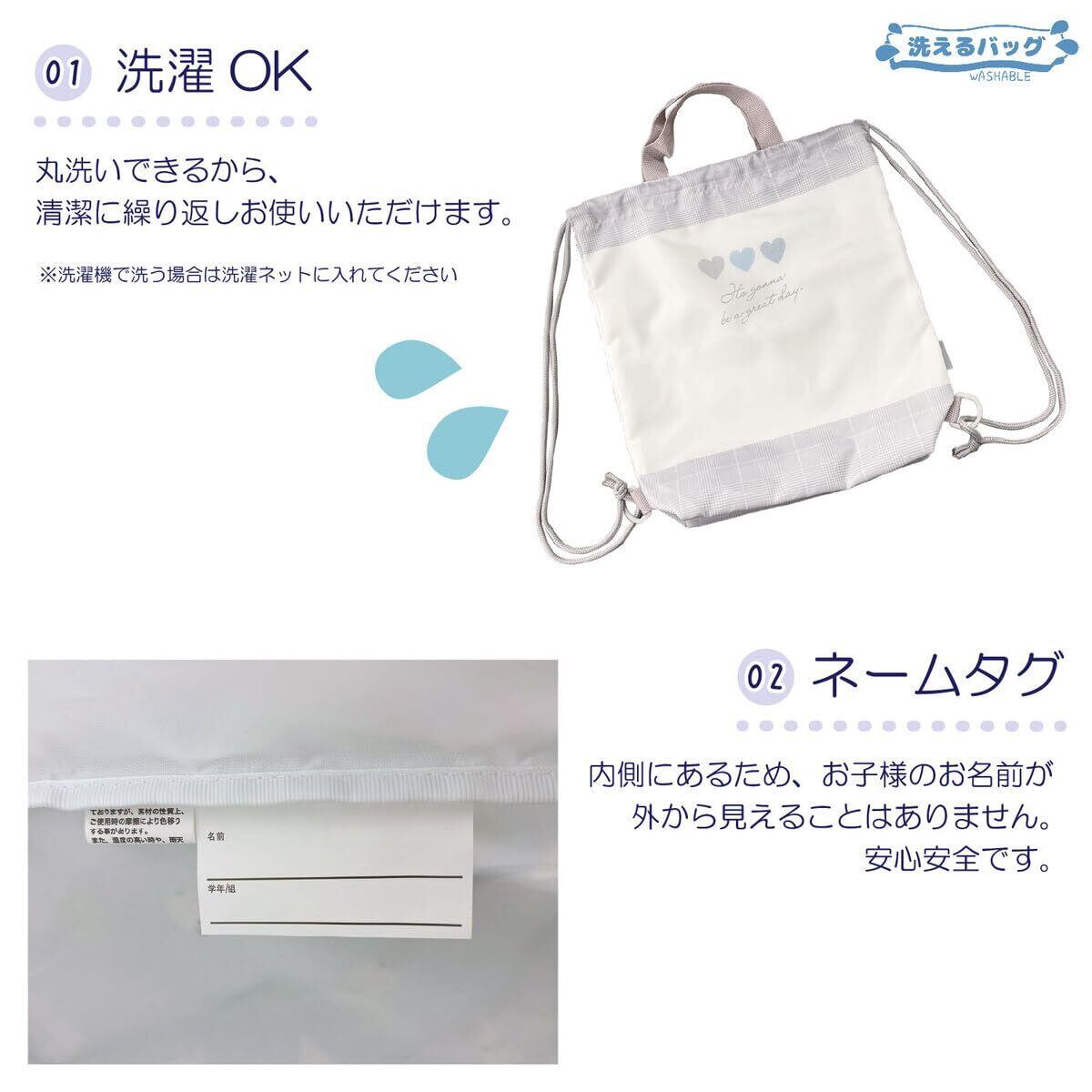 [K-PARTS] 洗えるバッグ ナップサック リュック 学童 入園入学 入園 入学 学童 児童 幼稚園 保育園 小学校 学校 習い事 体操着入れ 体操服入れ 体操服 体育 水泳 プール 通園 通学