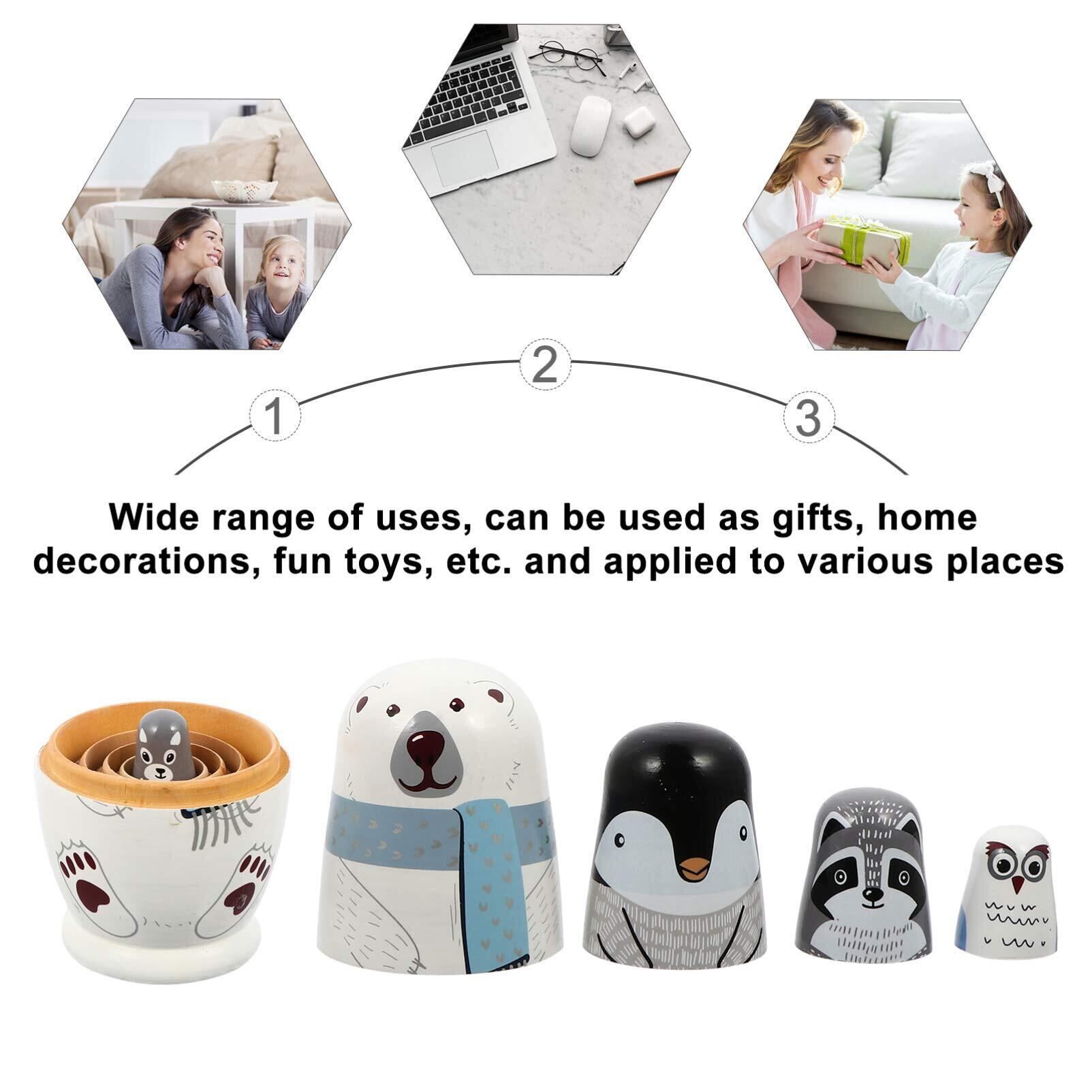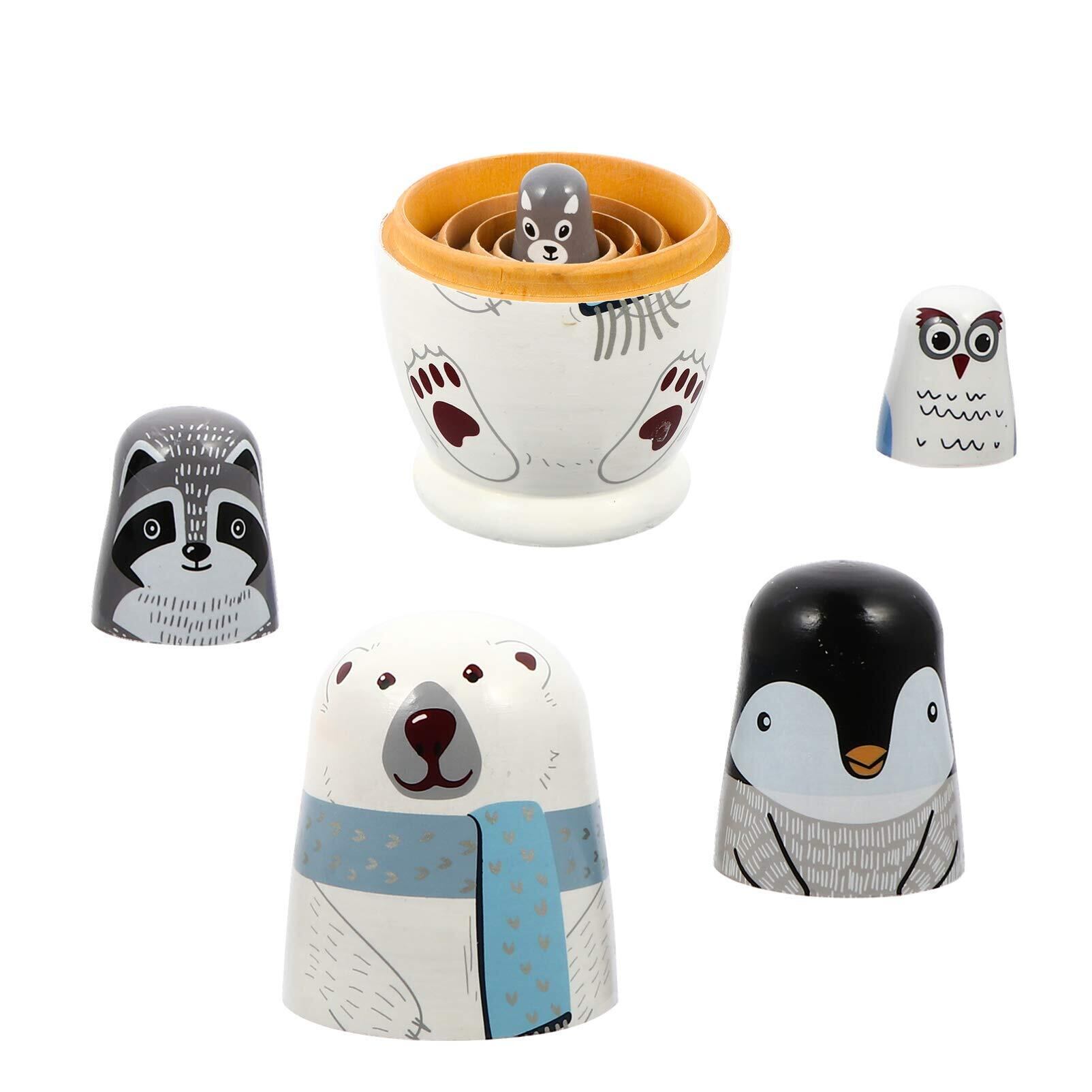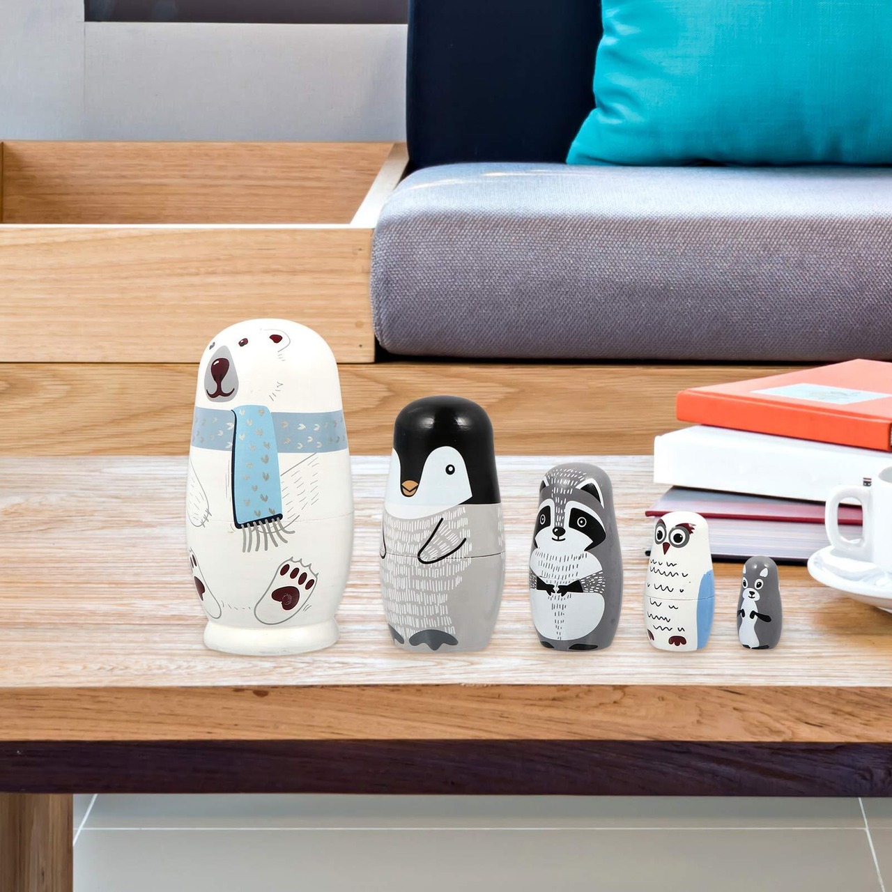 入れ子 マトリョーシカ 5層 動物 木製 おもちゃ 置物 手作り 可愛い インテリア 誕生日プレゼント 民芸品 5個セット
