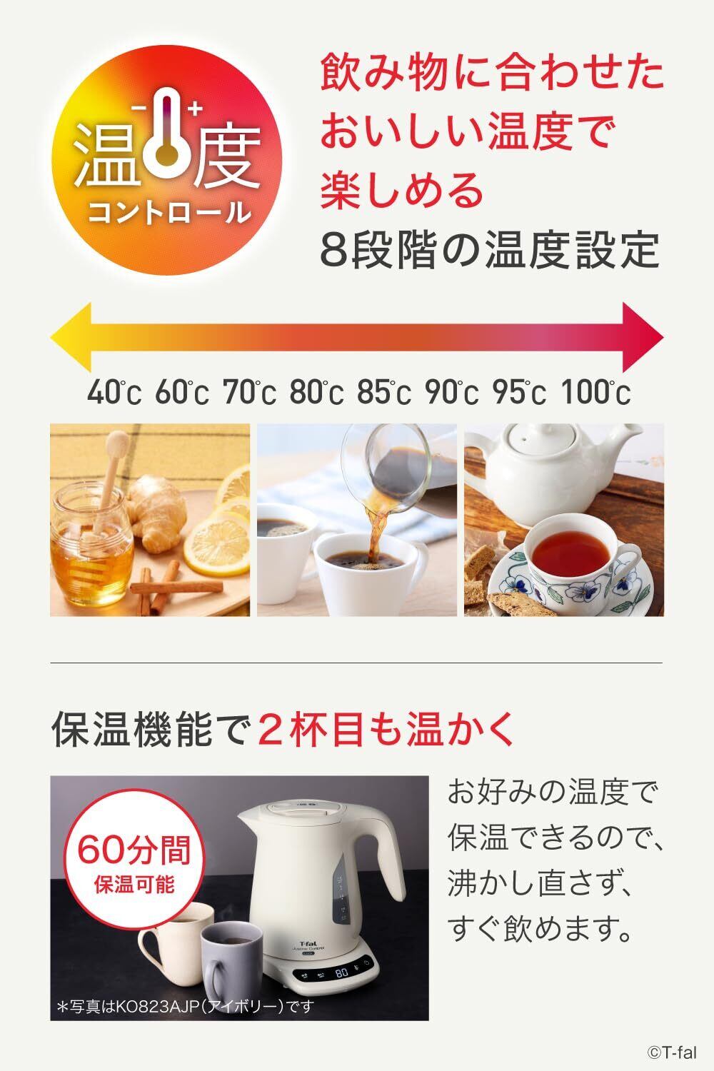 ティファール 電気ケトル 1.2L 大容量 温度調節 8段階 転倒お湯もれロック 「ジャスティン ロック コントロール」蒸気が出にくい設計 保温 ケトル専用洗浄剤(1包)付き ブラック KO823NJPA