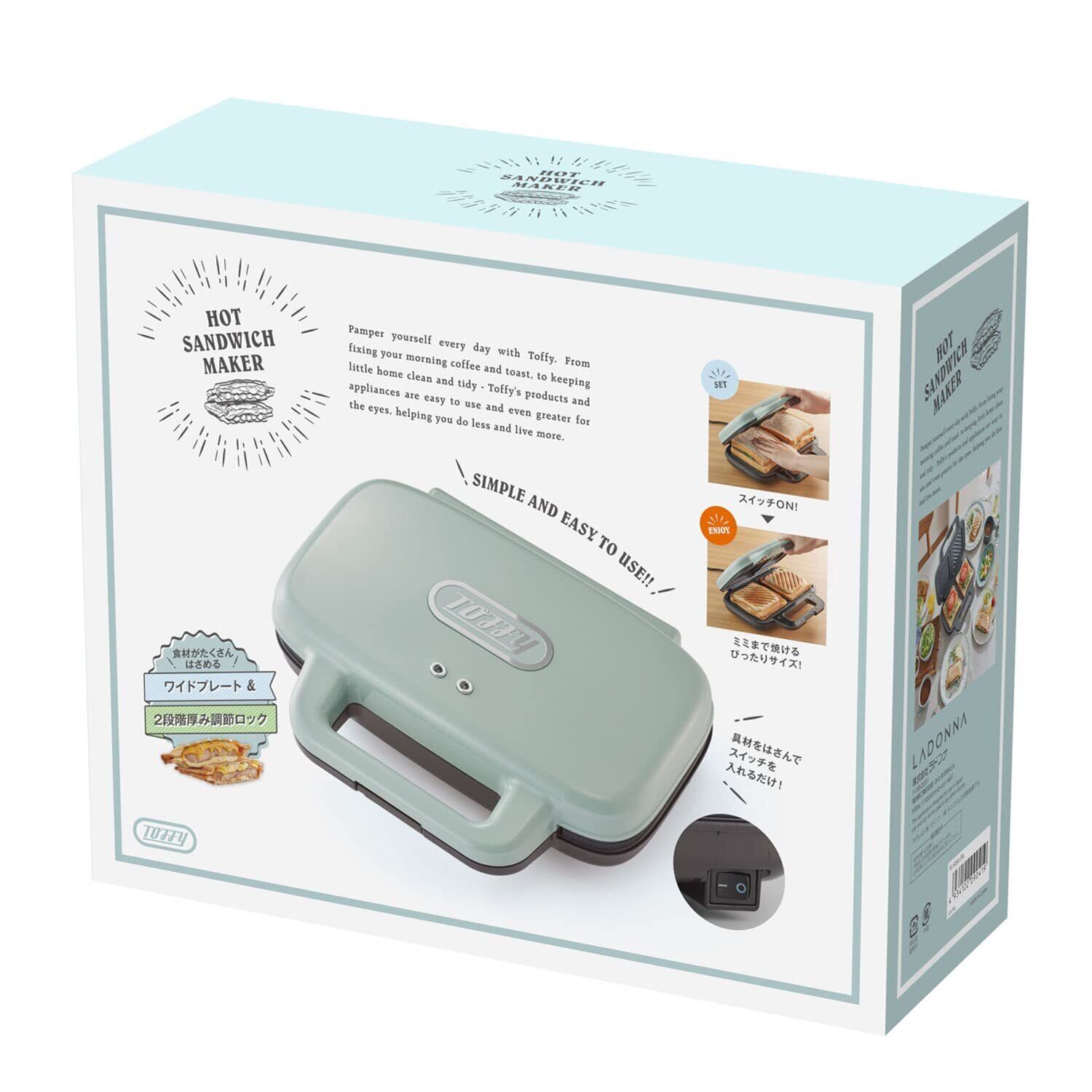 【Toffy/トフィー】 ホットサンドメーカー K-HS4 (ペールアクア) 2枚焼き ミミまで焼ける ワイドプレート カンタン レトロ かわいい 朝ごはん 休日 モーニング ひとり暮らし K-HS4-PA