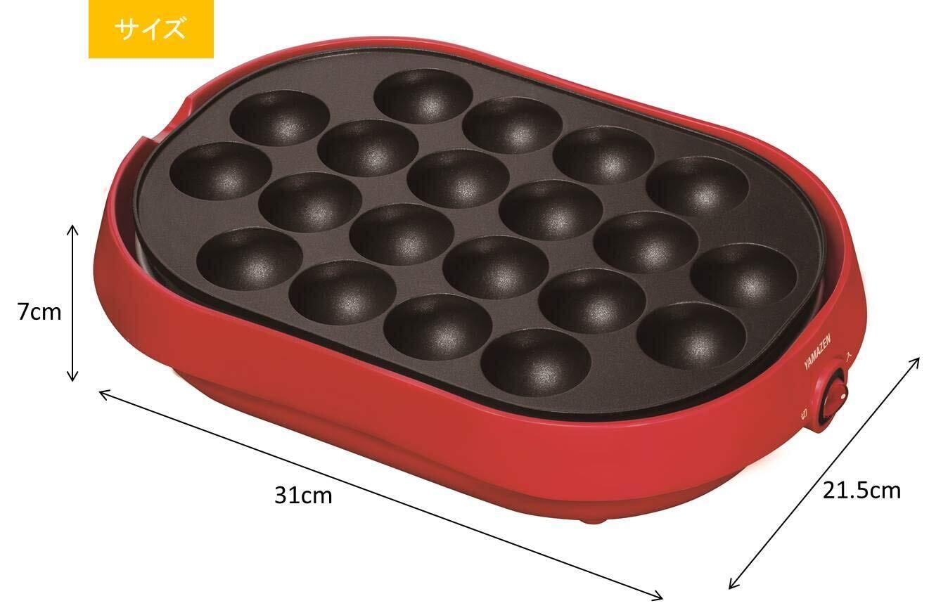 [山善] たこ焼き器(平面プレート付) 20個焼き 着脱式プレート式 レッド YOC-W200(R)