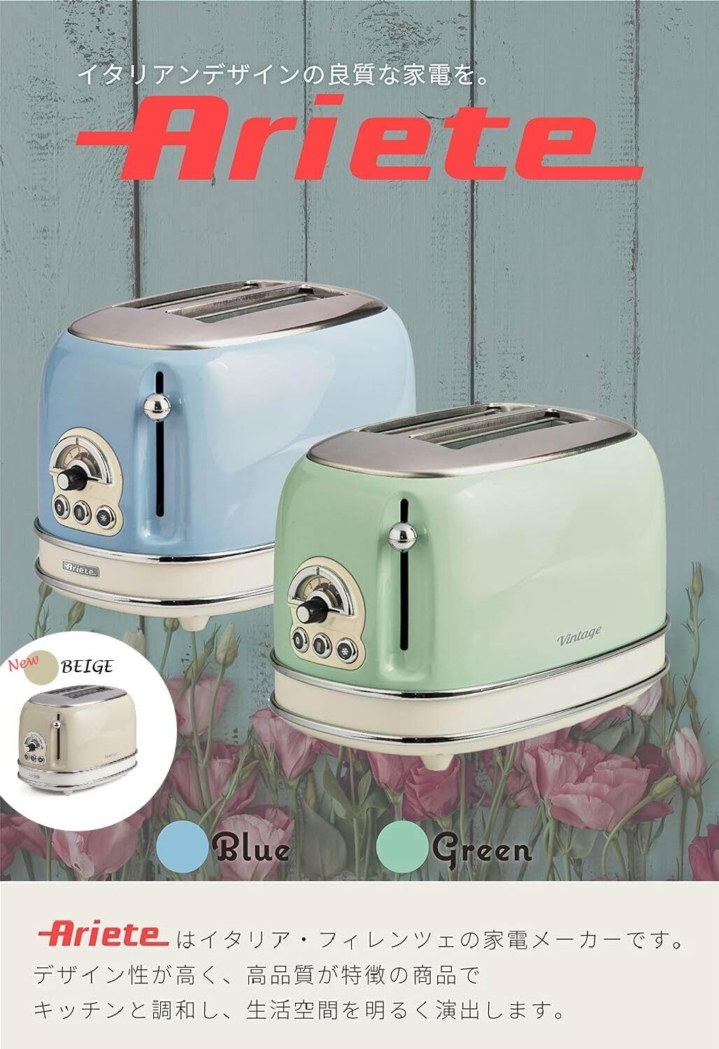 アリエテ ポップアップトースター 750W パンくずトレイ付き 冷凍パン イタリアデザイン ブルー 155BL