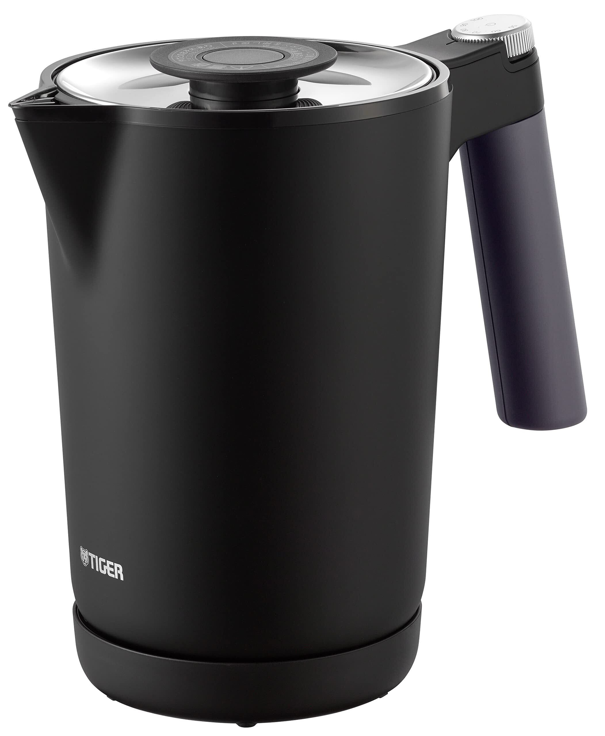 タイガー魔法瓶(TIGER) 電気ケトル 温度調節機能付き 湯沸かし コーヒードリップ ステンレス 7Safe+ 1.0L 転倒お湯漏れ防止 カラだき防止 蒸気レス オニキスブラック PTQ-A100KO