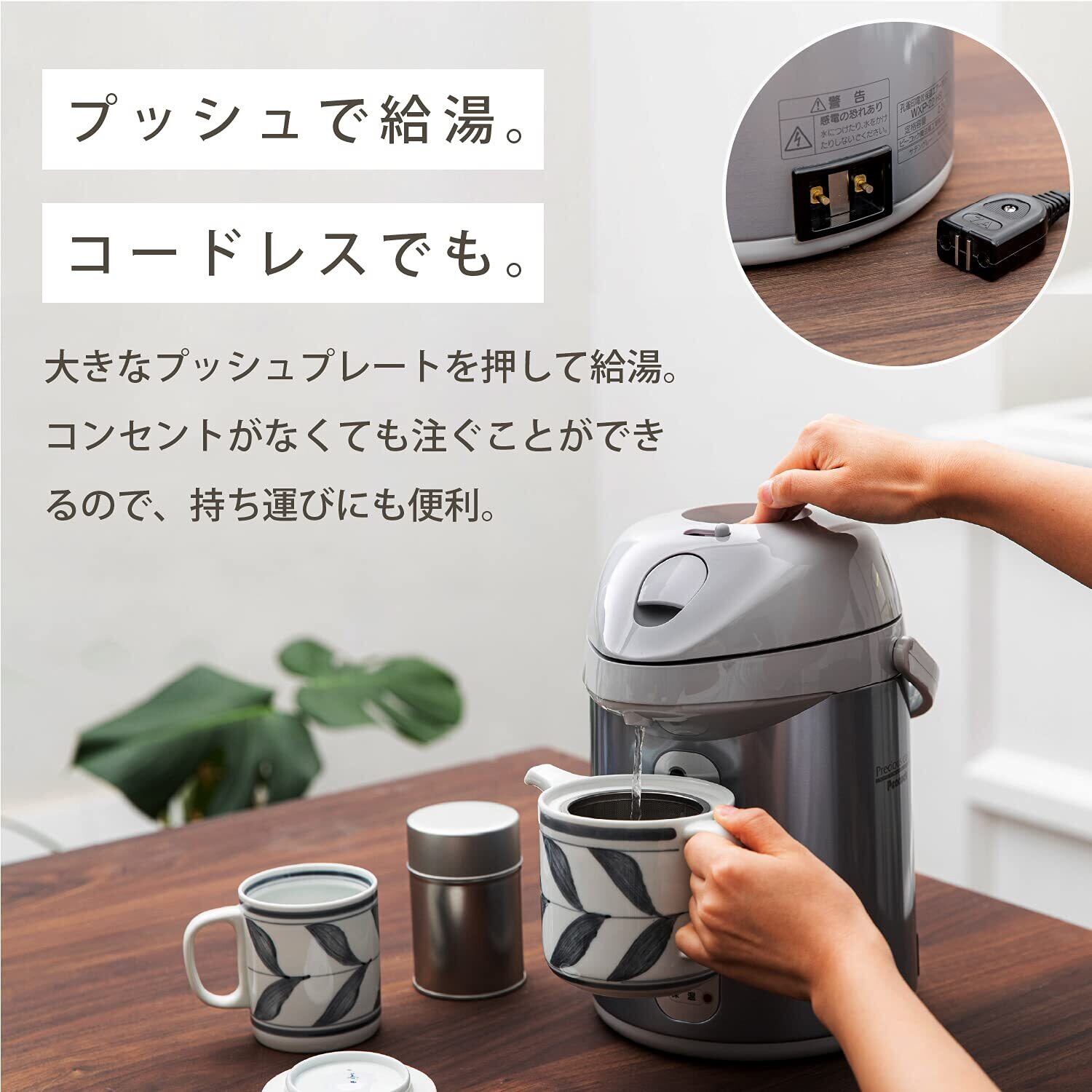 機能:空だき防止、マグネット式プラグ、上ぶた着脱式、コードレス給湯