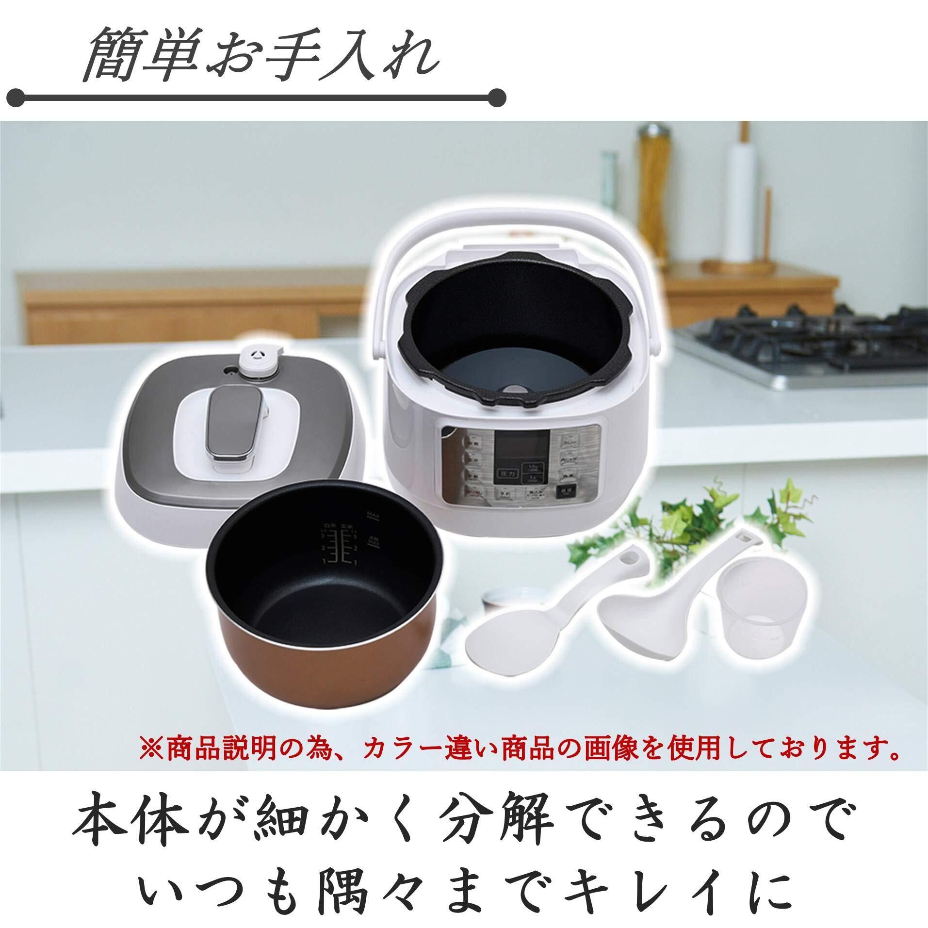 【商品仕様】本体サイズ:幅26×奥行28×高さ25cm、本体重量:3.8kg、調理容量:約1.6L、炊飯容量:630ml(約3.5合)、消費電力:600W、最高圧力:70kPa