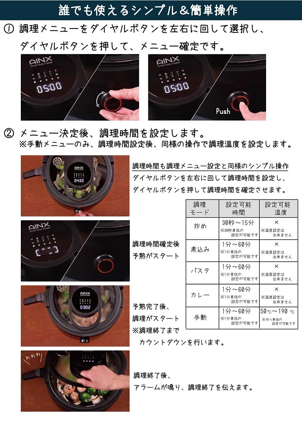 アイネクス 電気調理鍋 3.5L 炒め/低温/無水/煮込/パスタ/カレー/蒸し/デザート 自動調理 レシピブック付 ガラス蓋 ブラック AX-C1BN
