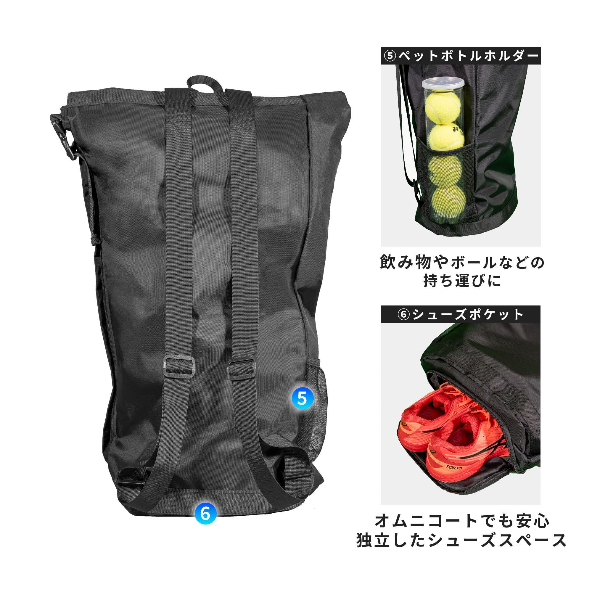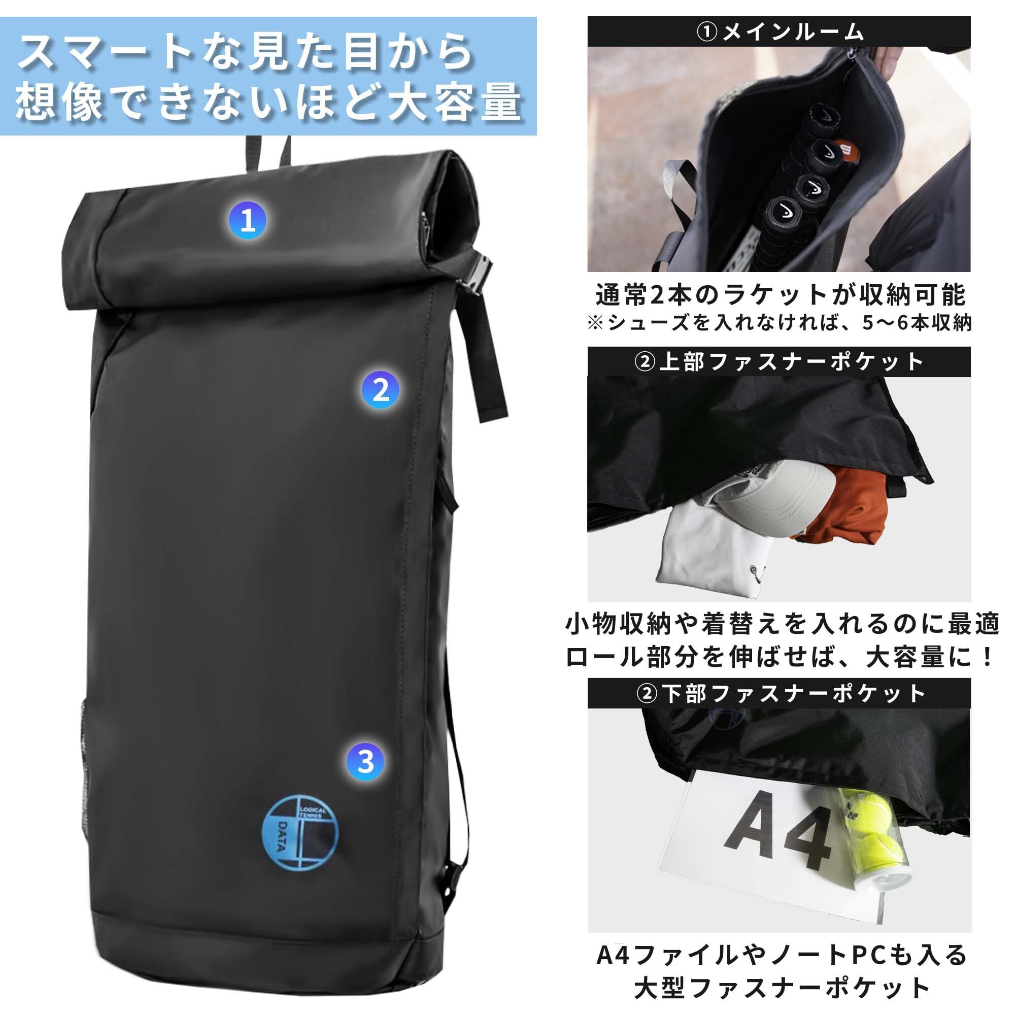 Logical Tennis Data ラケットバッグ ラケットケース テニス バッグ リュック ラケット 2本収納可 シューズ ロールトップ ラケットトート テニスバック