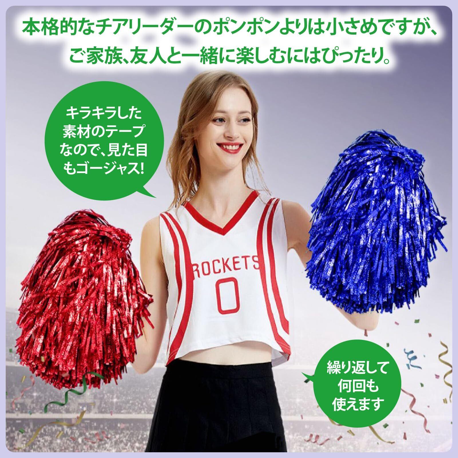 持ち手がついているので、お子様からご高齢の方までもちやすい!本格的なチアリーダーのポンポンよりは小さめですが、ご家族、友人と一緒に楽しむにはぴったり。高齢者施設のダンス、レクリエーションにもどうぞ!
