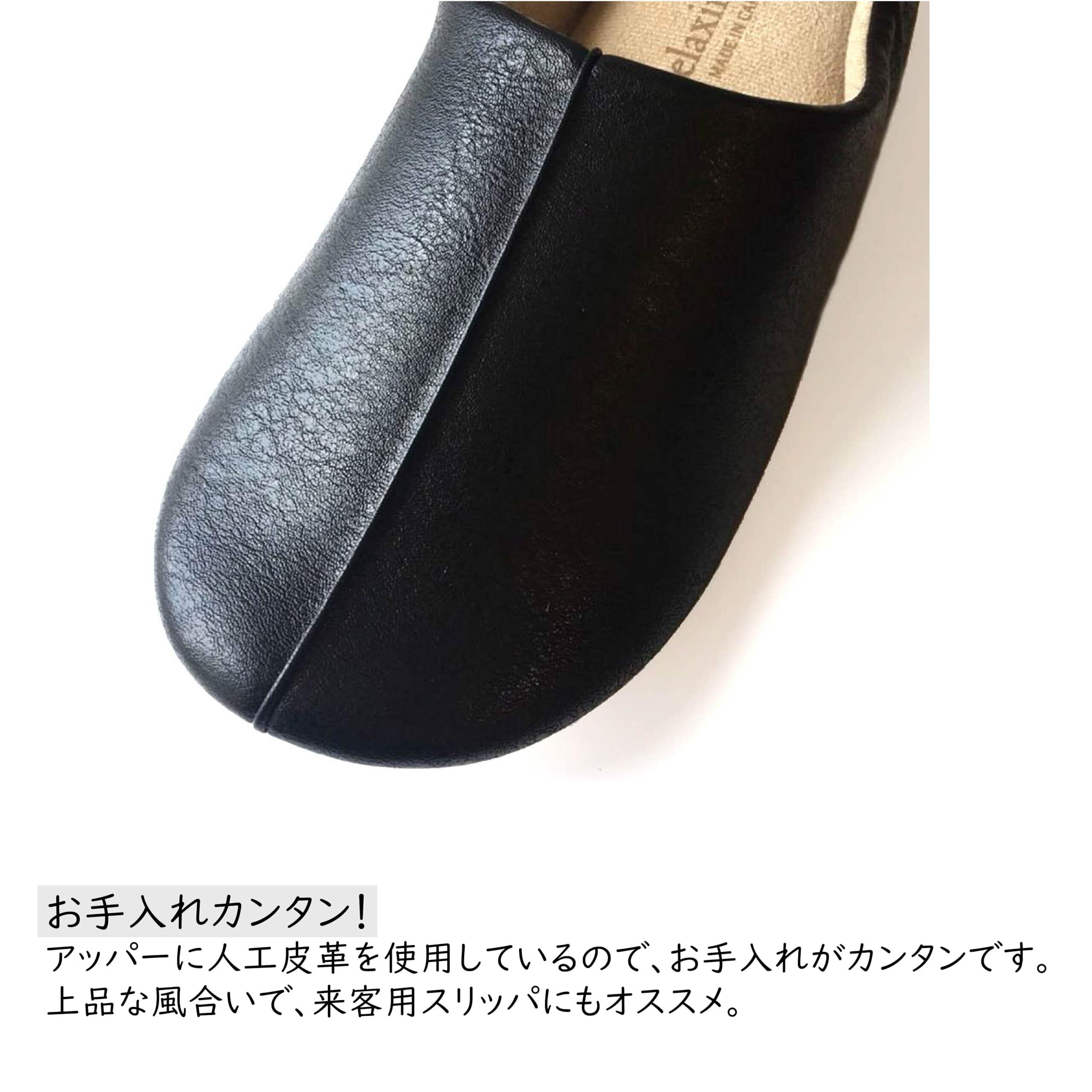 ニッポン スリッパ ルームシューズ relaxin'home フェイクレザー 室内 トイレ 来客用 メンズ レディース やわらかな履き心地 拖鞋 24-27cm ブラック 300542