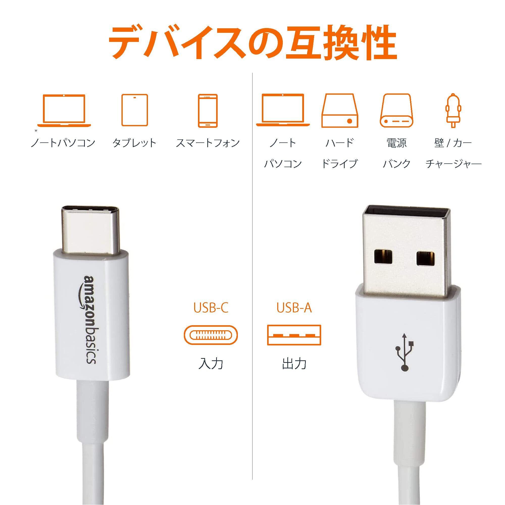 商品内容:デバイスの充電および電力供給、データ、写真、音楽の転送用6フィート15WのUSB-C 2.0 to USB-Aケーブル1本。