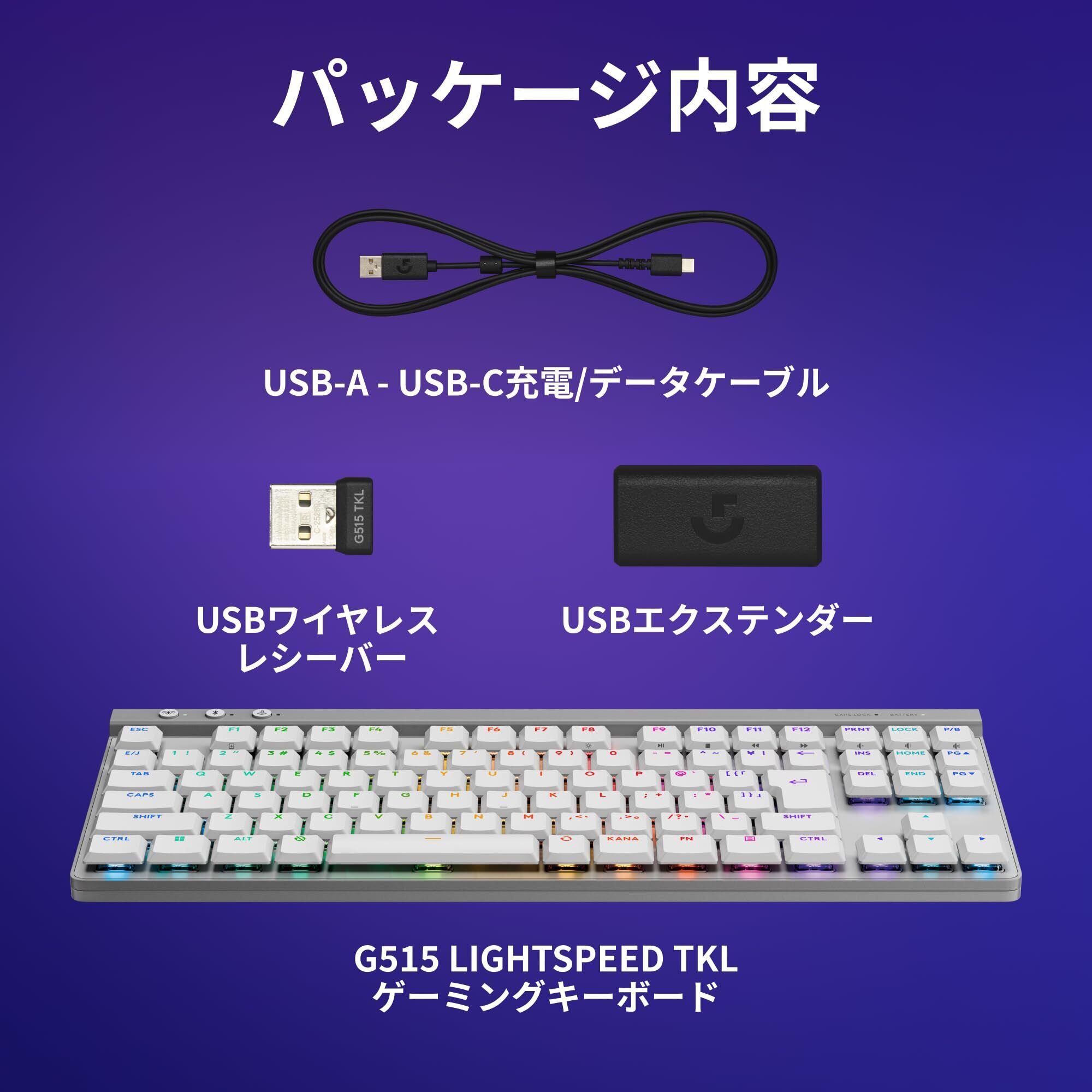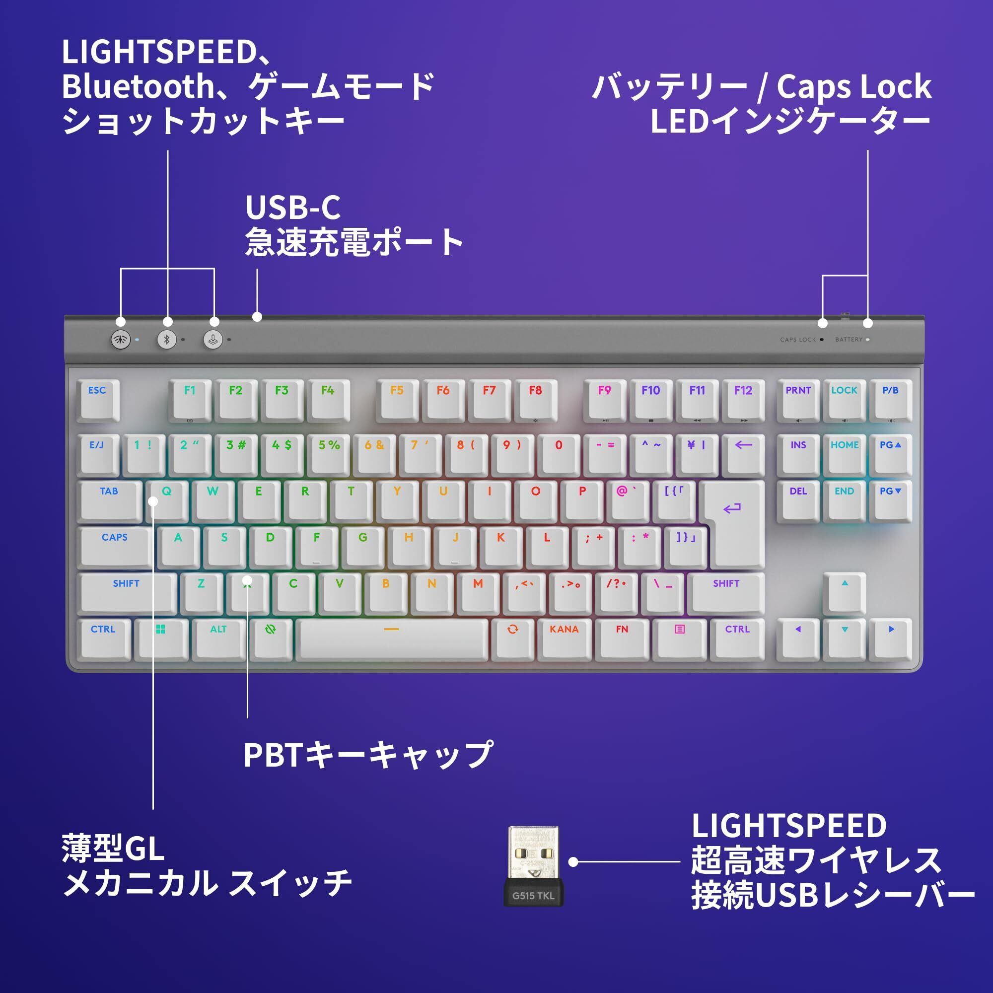 Logicool G ゲーミングキーボード G515 LIGHTSPEED TKL 薄型 ワイヤレス テンキーレス キーボード G515-WL-LNWH リニア 赤軸 静かなタイピング 日本語配列 LIGHTSPEED Bluetooth 接続対応 LIGHTSYNC RGB PC ホワイト 国内正規品