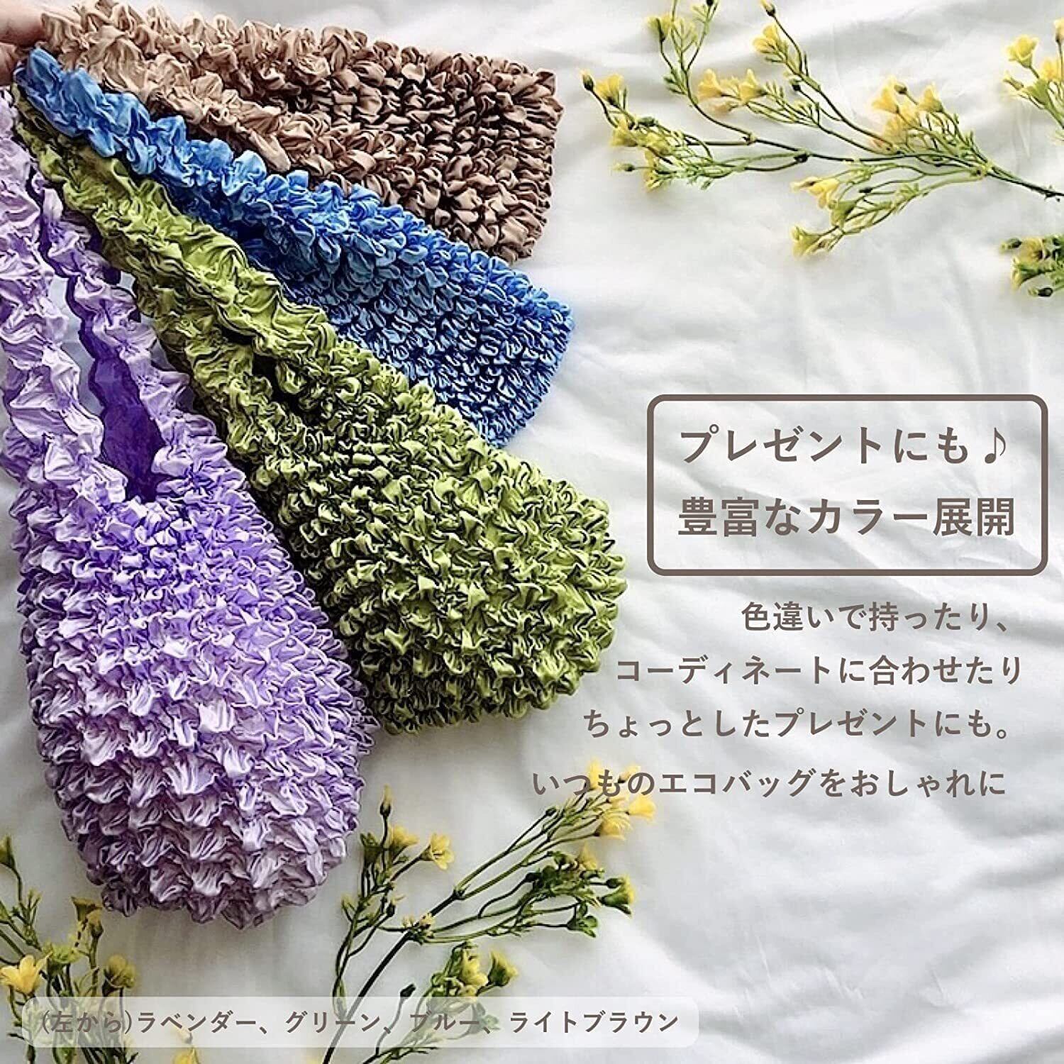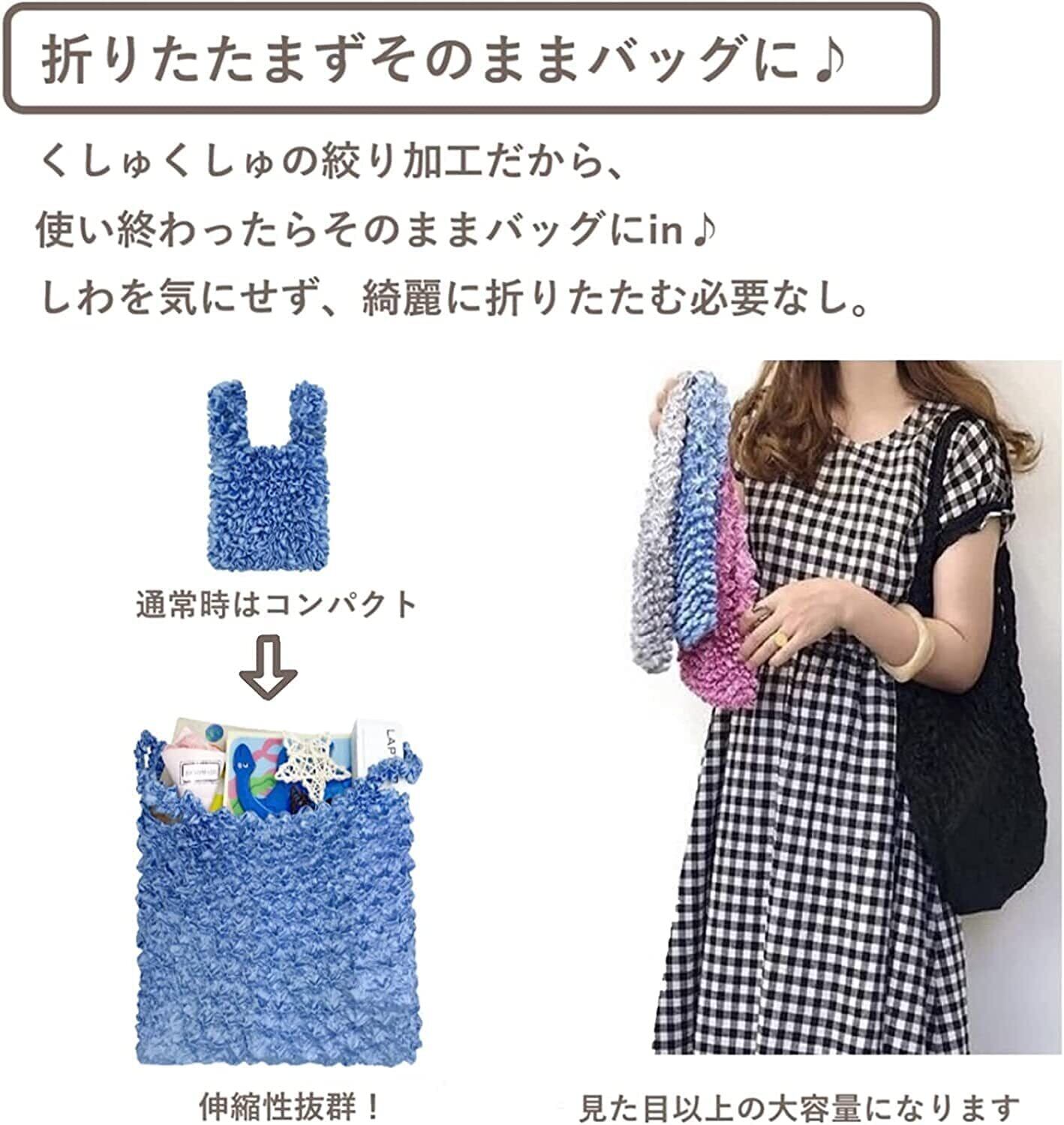 【フリルのようなデザイン】伸び縮みするしわ加工で、バッグに直すときも折りたたむ必要なし! ビニール袋の有料化で使う頻度が高くなったエコバッグだからこそ、 出し入れ楽々で使い勝手抜群のものを。 ちょっとしたプレゼントにも最適なおしゃれなデザインです。