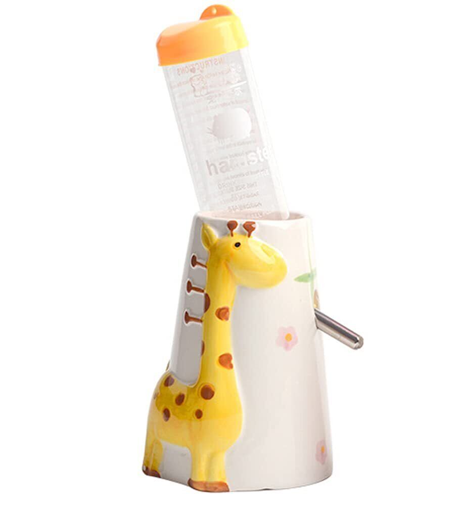 ハムスター リス ハリネズミ 水飲み器 自動給水器 ボトル ロールボール 水漏れ防止 陶器製 ウォーターボトル 小動物 (イエローの台座+125mlボトル)