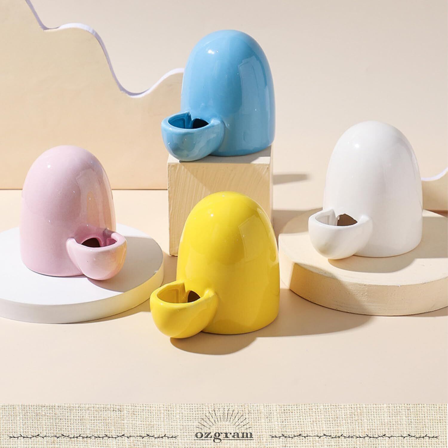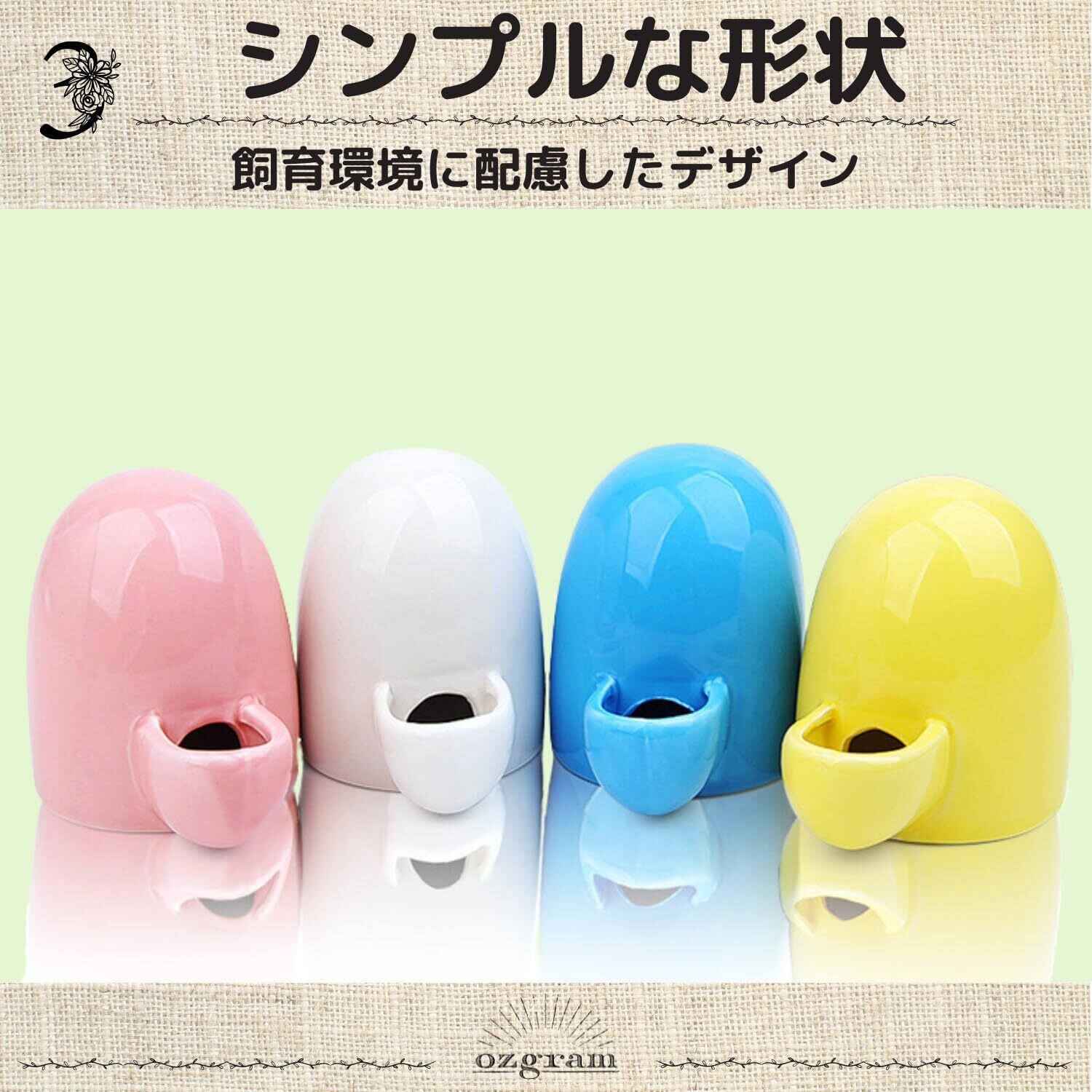 ozgram 給水器 陶器製 【イエロー】 置き型 水飲み器 給水タンク 給水ボトル 小動物 小鳥 インコ ハリネズミ ハムスター ジャンガリアン