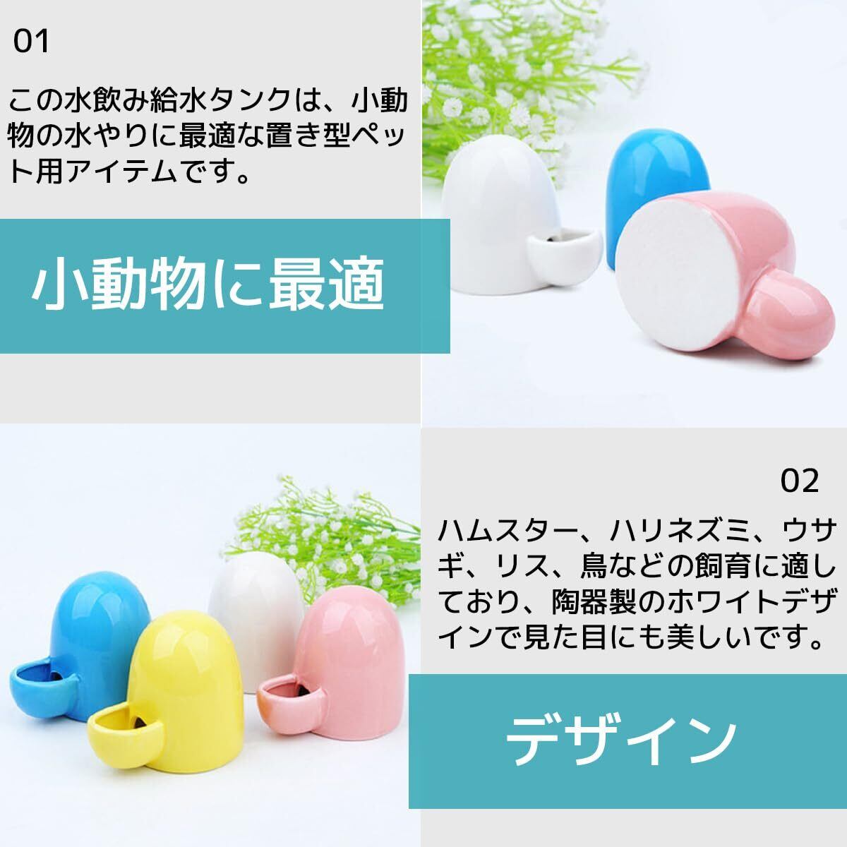 FJmark 水飲み 給水タンク 小動物 水やり 置き型 ペット ハムスター ハリネズミ ウサギ リス 鳥 飼育 陶器 ホワイト 1個 (ピンク)