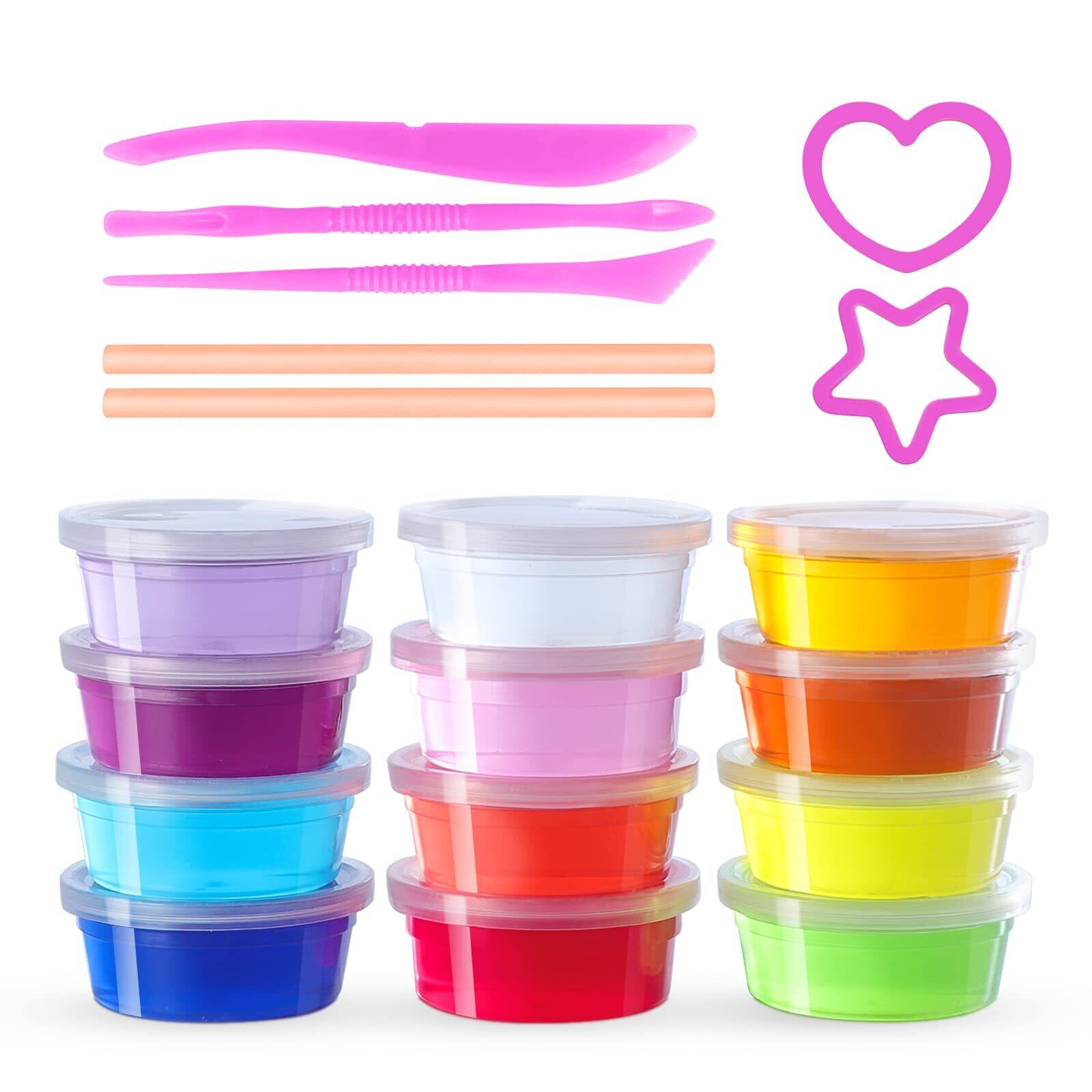 TecBillion スライム 12個 セット 水晶スライム Slime DIYねんど おもちゃ 抜き型 ヘラ ストロー付き お誕生日 お祭り プレゼントに最適 対象年齢 6歳以上