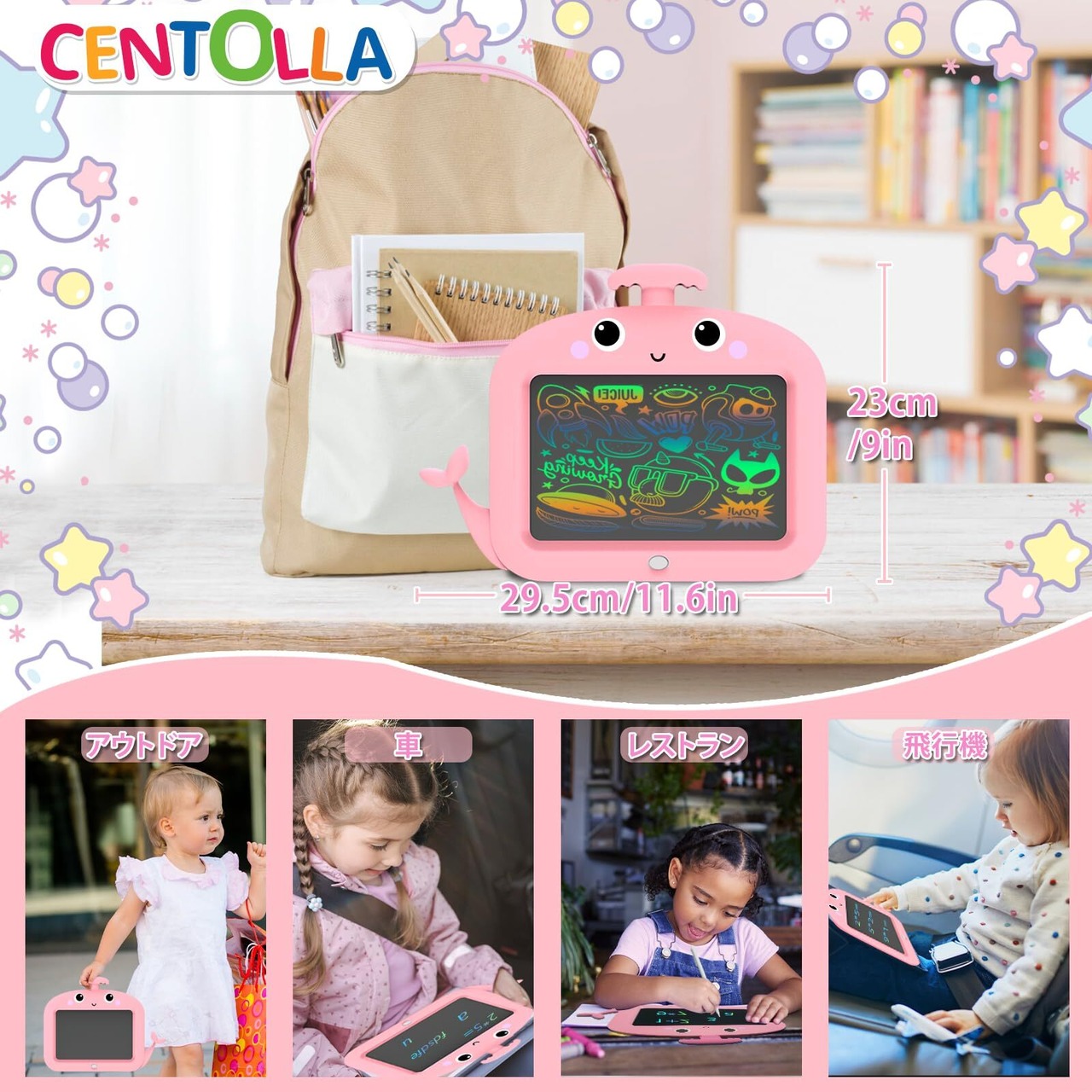 CENTOLLA お絵かきボード 高輝度 8.5インチ LCDカラー画面 繰り返し書いて消せるボード 幼児教育玩具 子供学習文具 落書き 知育玩具 男の子 女の子3歳以上 誕生日ギフト (鯨,ピンク)