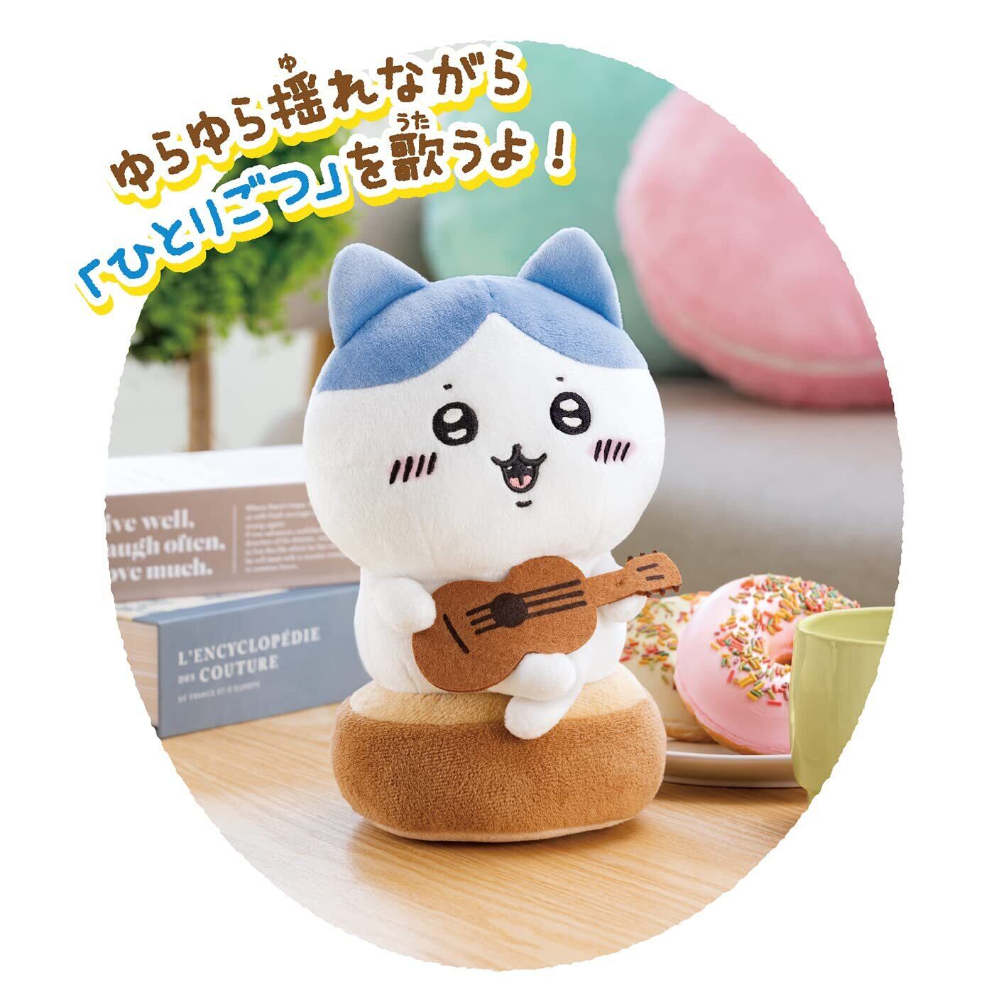 ハチワレがゆらゆら揺れながら「ひとりごつ」を歌うよ! 漫画やアニメでもおなじみのハチワレが弾き語りするシーンをぬいぐるみで再現しました。2モード選べ、「ライブモード」では自動でハチワレが左右に揺れて「ひとりごつ」を歌います。「拍手モード」では途中で動きと歌が止まるので、拍手をすると続きを歌ってくれます。歌が終わったあと拍手するともう一度歌います。オートパワーオフ機能付きです。