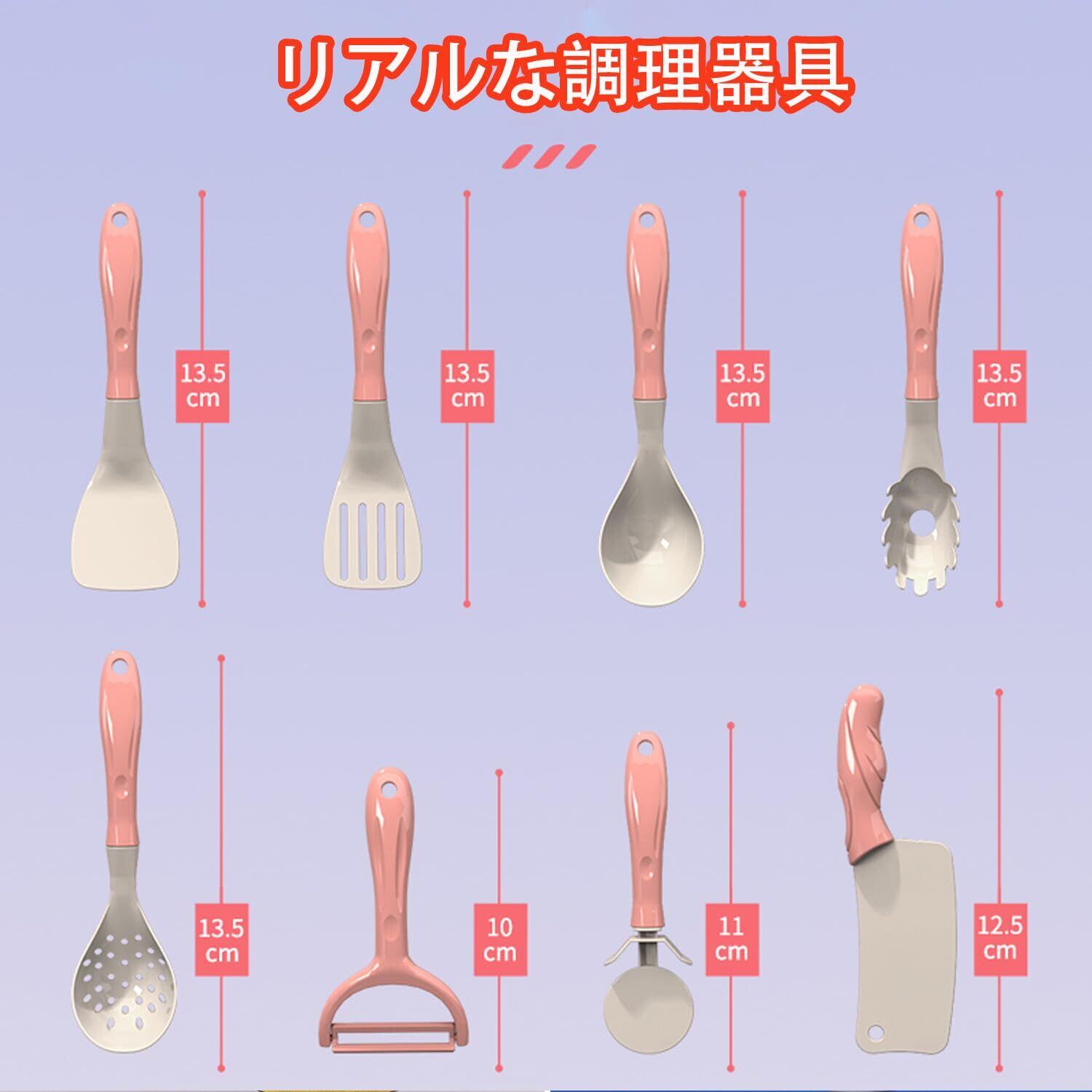 おままごとセット キッチントイ おもちゃ 108点セット 収納バスケット 圧力鍋 お鍋 ままごと用調理器具 贅沢食材 リアルな食材 切る遊び ごっこ遊び 親子遊び 子供 誕生日 入園祝 プレゼント (ピンク)