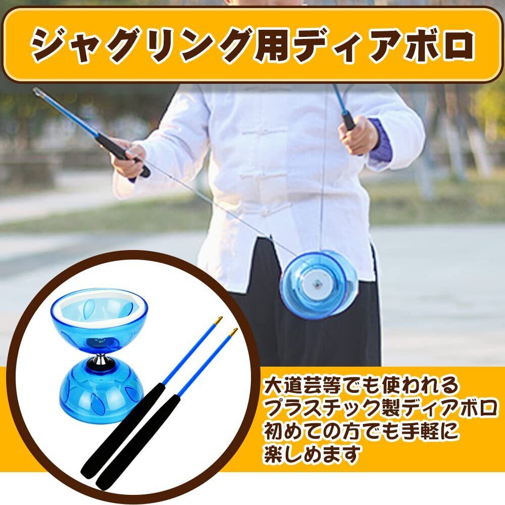 ディアボロ 中国ゴマ スティック 紐付き 壊れにくい 回転しやすい ジャグリング 大道芸 初心者 (ブルー)