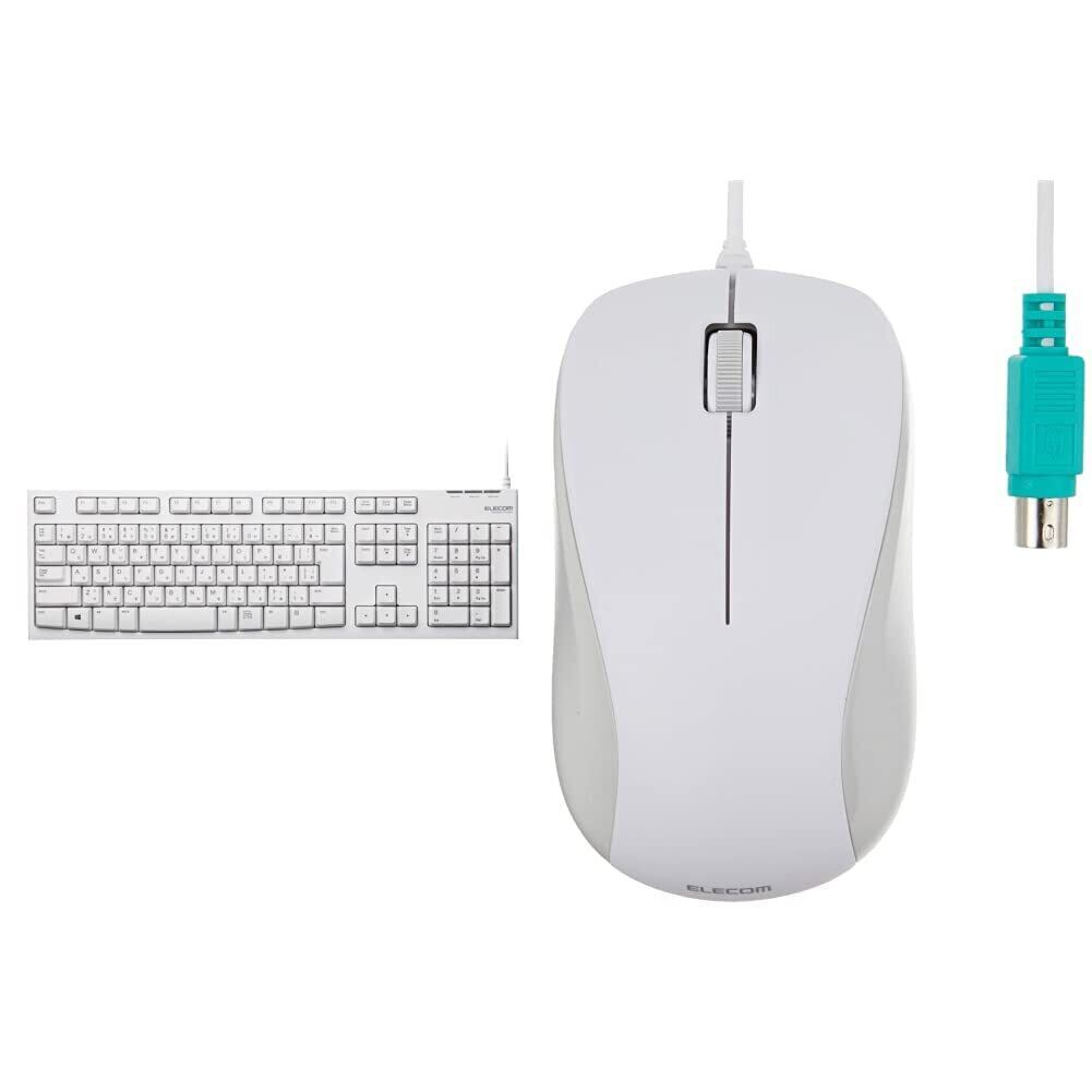 【セット買い】エレコム キーボード 有線 メンブレン Rohs指令準拠 1000万回高耐久 ホワイト TK-FCM064WH/RS & エレコム マウス 有線 Mサイズ 3ボタン PS2 光学式 ホワイト ROHS指令準拠 M-K6P2RWH/RS