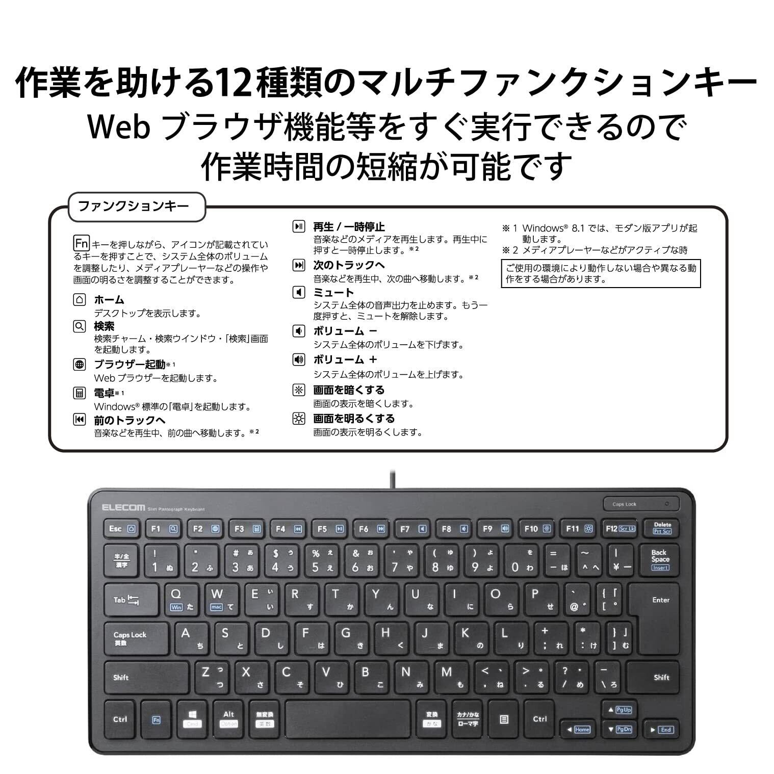 エレコム キーボード 有線 パンタグラフ ミニキーボード ブラック TK-FCP096BK