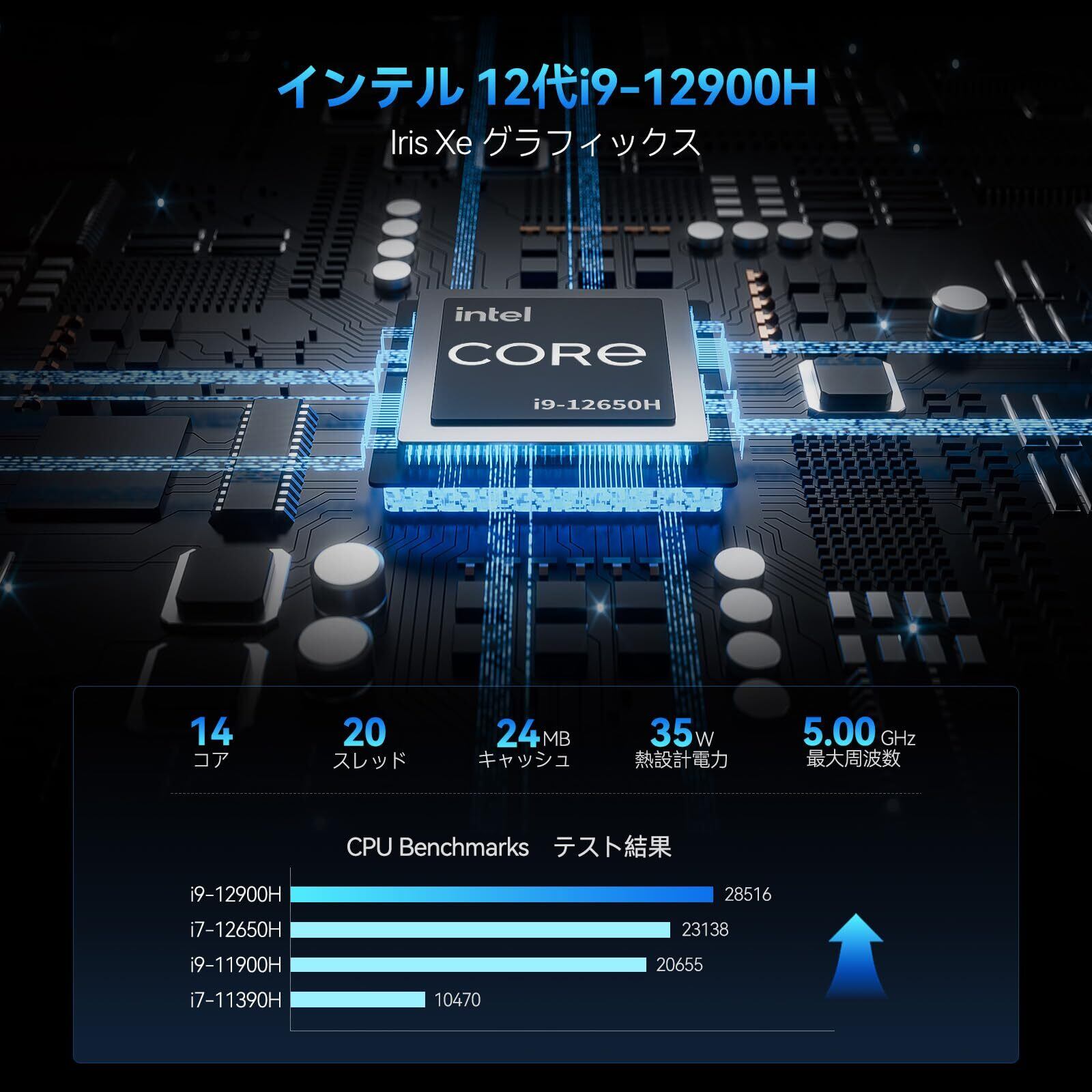 【優れたCPU性能】第12世代 Intel Core i9-12900H プロセッサーを採用し、Intel 7 プロセス技術で製造されています。14コア20スレッド、最大周波数5.0GHz、シングルコア性能は前世代比約20%向上、マルチコア性能は約40%向上しています。Intel Iris Xe Graphicsを搭載し、ほとんどの主流ゲームをスムーズに実行でき、1080p 解像度でも高画質の要求を満たすことができます。