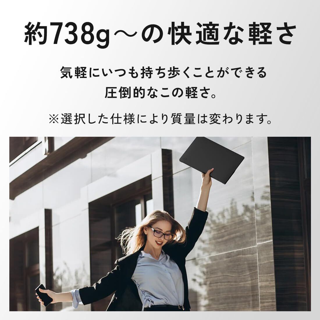ディスプレイ:14.0型ワイド WUXGA[1920×1200] ノングレア液晶 / 拡張I/F:HDMI出力×1、USB3.2(Gen2)Type-C×2(左側面×2(USB Power Delivery対応、DisplayPort Alt Mode対応))、USB3.2(Gen1)Type-A×2(右側面×1、左側面×1(電源オフUSB充電機能付)) / 無線通信:Wi-Fi 6E(2.4Gbps)対応、IEEE 802.11ax/ac/a/b/g/n準拠、MU-MIMO対応+Bluetooth v5.3準拠