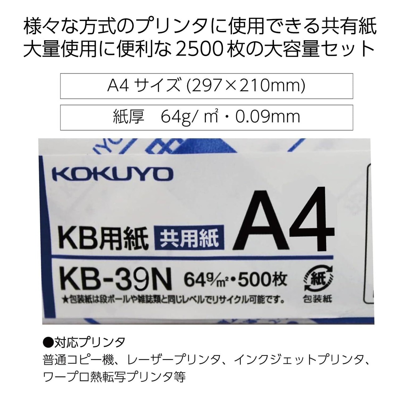 コクヨ コピー用紙 A4 白色度80% 紙厚0.09mm 500枚×5冊 2500枚 FSC認証 AMKB-39NX5