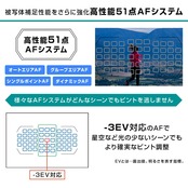 最高約8コマ/秒で14 ビットロスレス圧縮RAW で50 コマ、JPEGで100コマまでの高速連続撮影