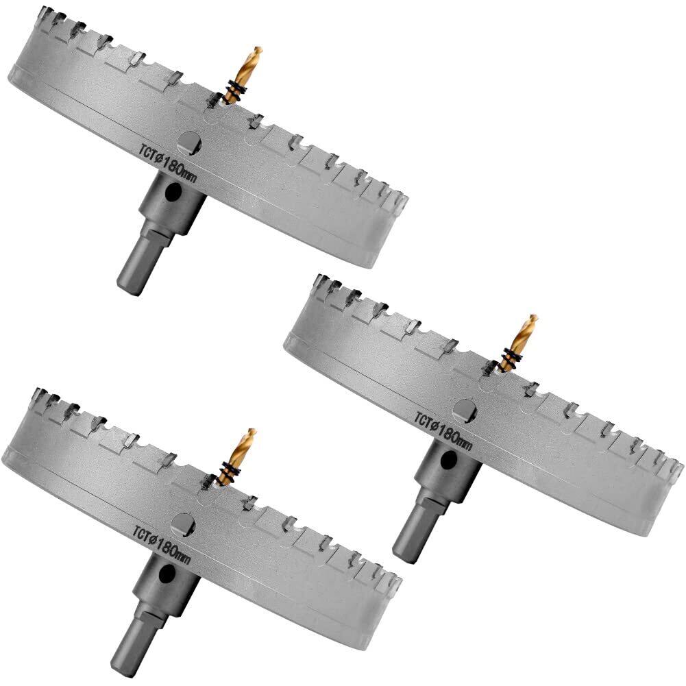 【現役電気工事士・大工推薦&監修】 超硬 ステンレス ホールソー 穴あけ 電動ドリル ホルソー ホールカッター ShopXJ (3個, 180mm)