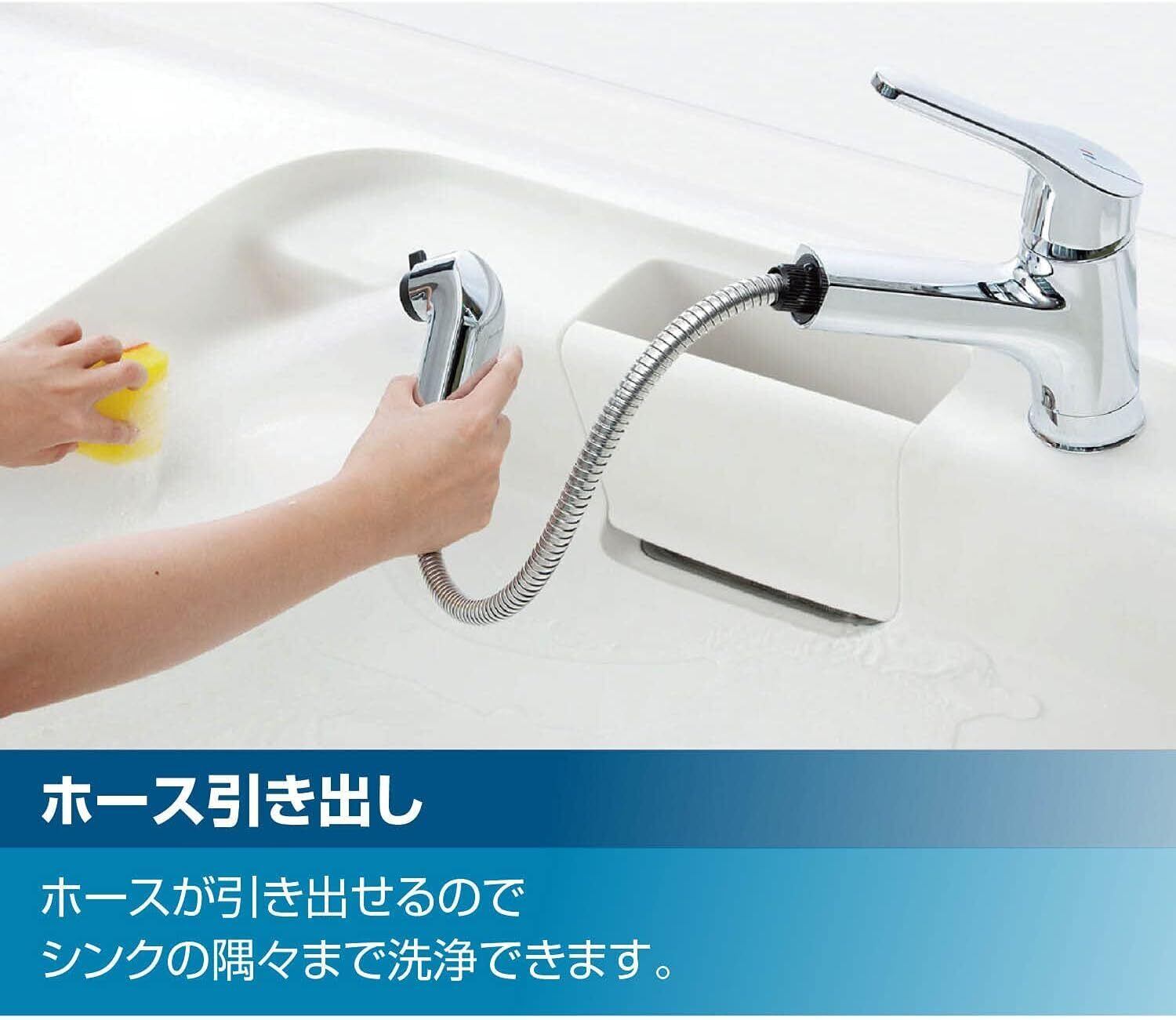 【快適で清潔なキッチン回りに】汚れにくくお手入れしやすい抗菌仕様のハンドルや、さっとひと拭きでお掃除できるスカート状の台座によって、水回りを清潔に保ちます。