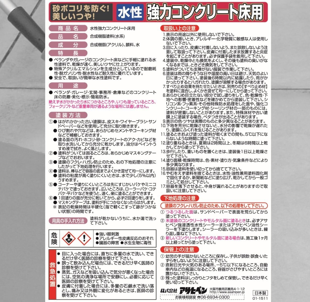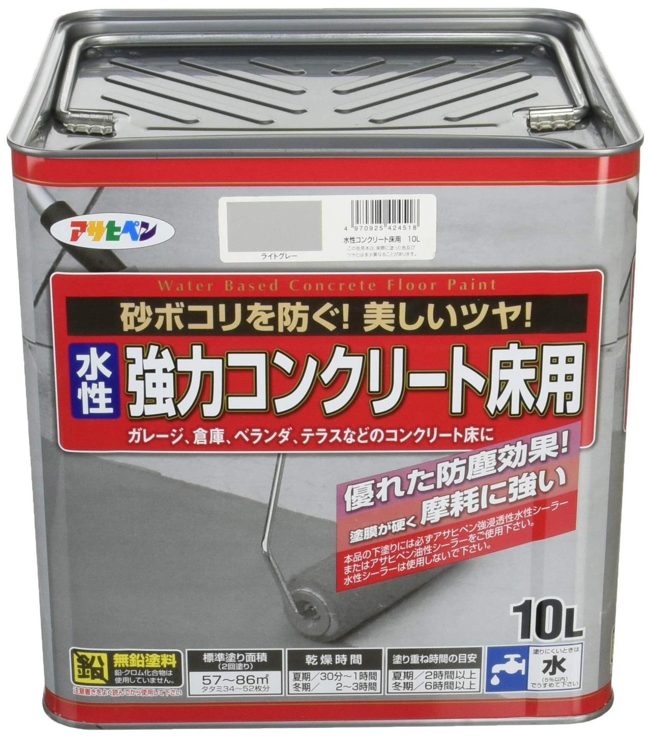 アサヒペン 塗料 ペンキ 水性 コンクリート床用 10L ライトグレー 水性 床用 ツヤあり 塗膜が硬い 摩耗に強い ベランダ ガレージ コンクリート 防塵 防水 耐ガソリン性 日本製