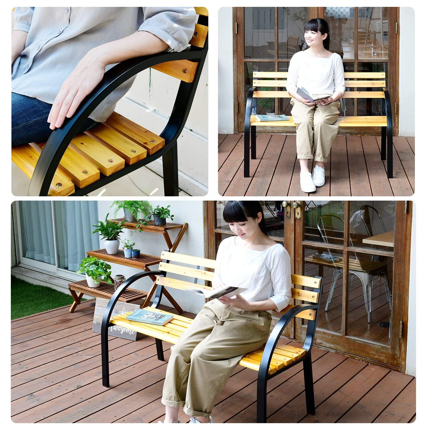 ガーデンマスター(Gardenmaster) ガーデンベンチ パークベンチ 幅112×奥行58×高さ75cm スチールベンチ パークベンチ スチール 天然木 お庭 ベランダ テラス バルコニー 休憩所 喫煙所 LC-D08C