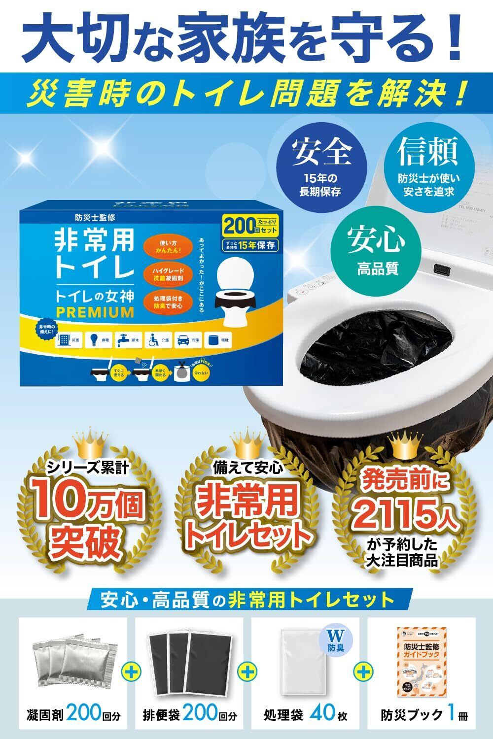 どこでも簡単トイレ トイレの女神PREMIUM 簡易トイレ 【3人~5人世帯向けに防災士が監修】 200回分 15年保存&日本製凝固剤 携帯トイレ 防災トイレ 非常用トイレ 防災グッズ 防災ガイドブック付き