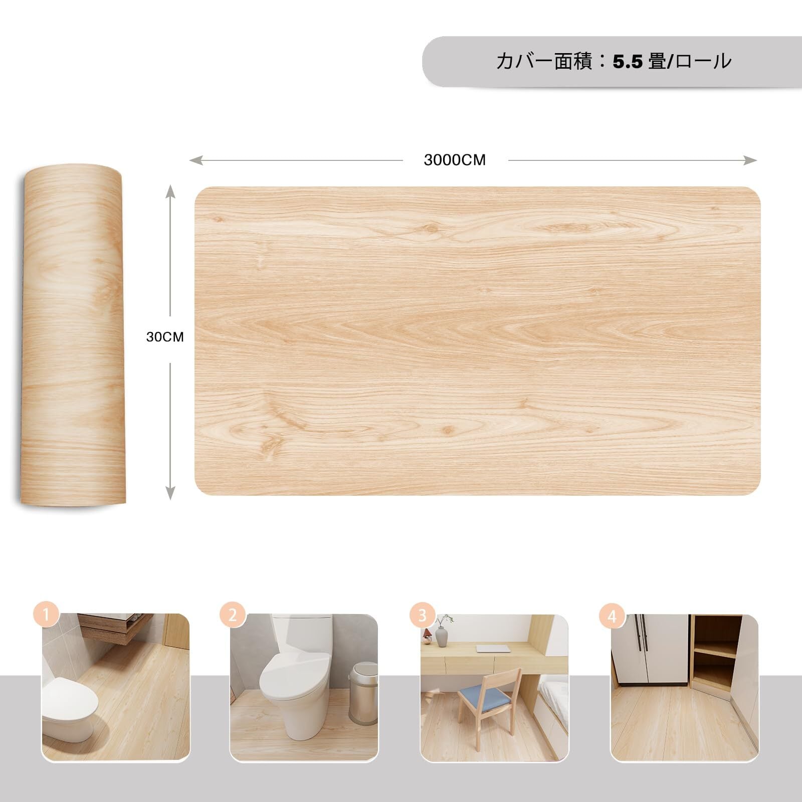 【特価セール】木目 置くだけ のり残らない 配送込み 床 リメイクシート 賃貸 防水 厚手 クッションフロア 畳 店舗 トレイ用 diy フロリングシート床材 (きめいろ, 長さ30メートル/ 5.5畳) | BOSSO