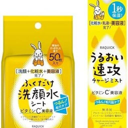 【セット品】ラクイック ふくだけ洗顔水シート ビタミンC美容液 50枚入 + うるおい速攻チャージミスト ビタミンC美容液 110mL